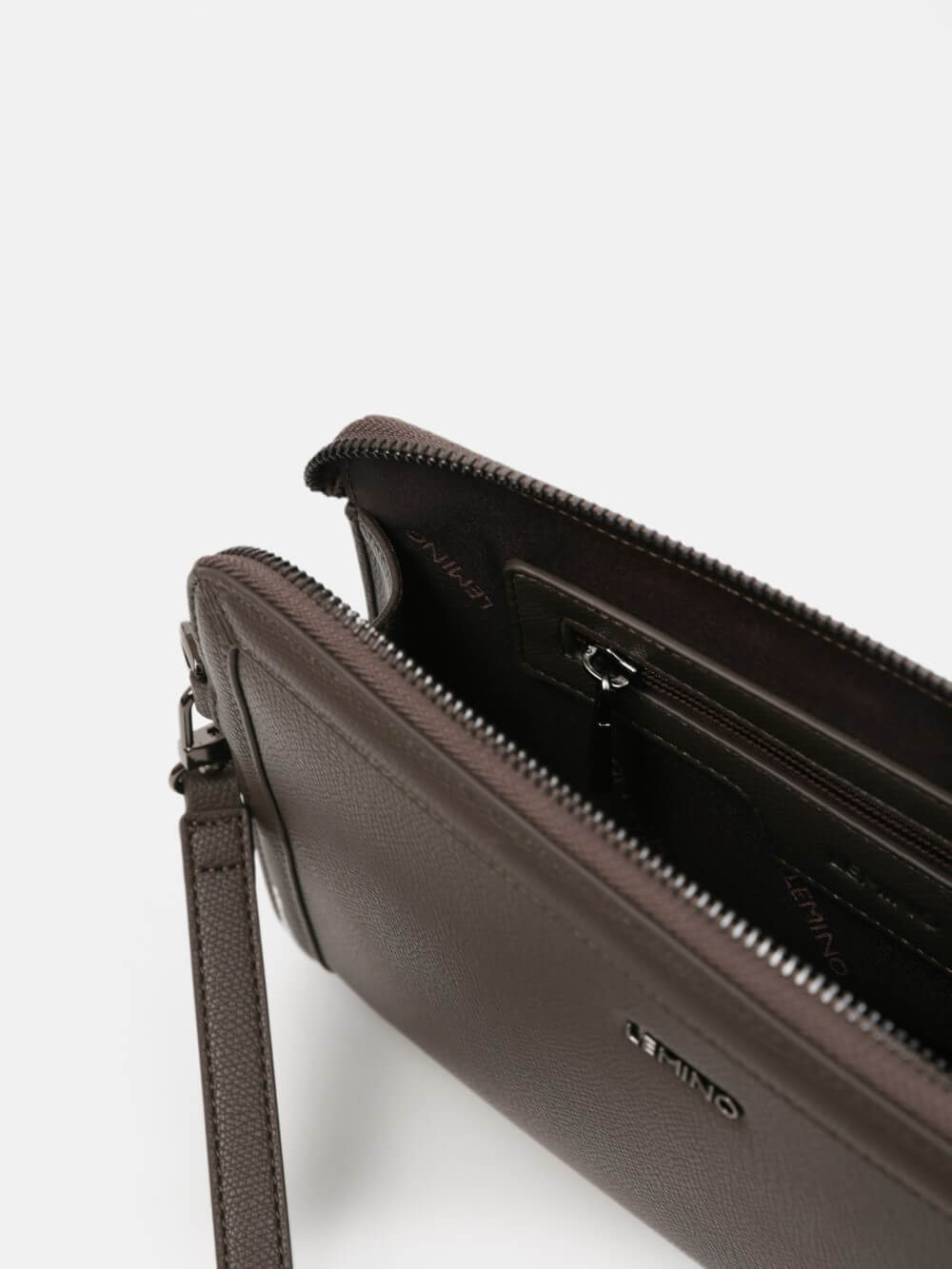 Chiếc clutch nam LEMINO mang thiết kế tối giản với phom dáng vuông vắn, bề mặt da trơn cao cấp tạo cảm giác mạnh mẽ nhưng vẫn đủ tinh tế. Logo kim loại được đặt gọn gàng ở trung tâm – như một dấu ấn vừa đủ, không phô trương nhưng đầy tự tin.