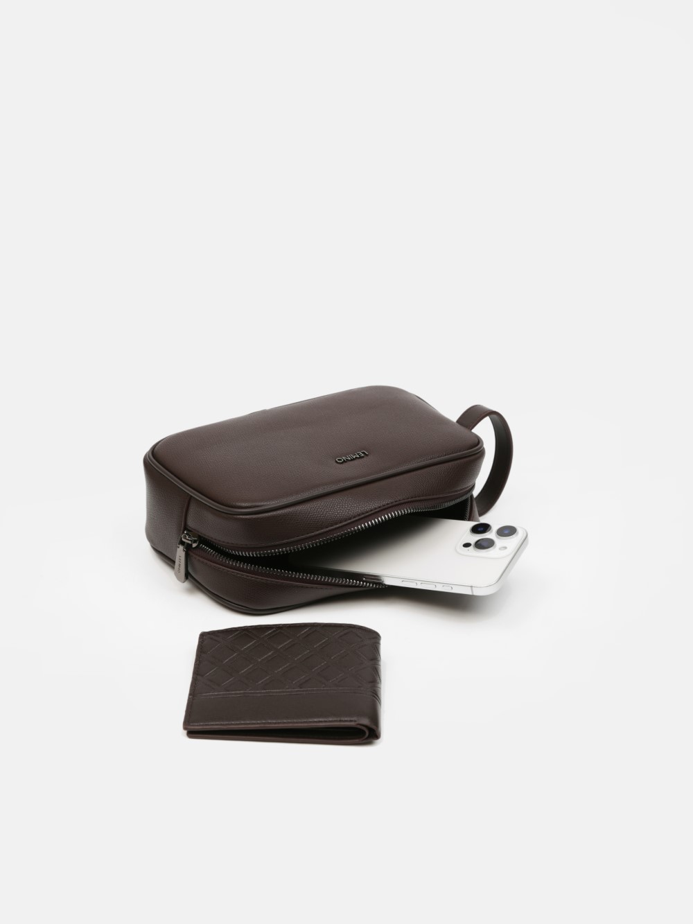 Chiếc clutch nam LEMINO mang thiết kế dáng hộp ngang hiện đại, với những đường bo mềm mại tạo cảm giác chắc chắn nhưng không thô cứng. Bề mặt da trơn cao cấp, kết hợp logo kim loại nhỏ tinh tế – đủ để tạo dấu ấn mà không cần phô trương.
