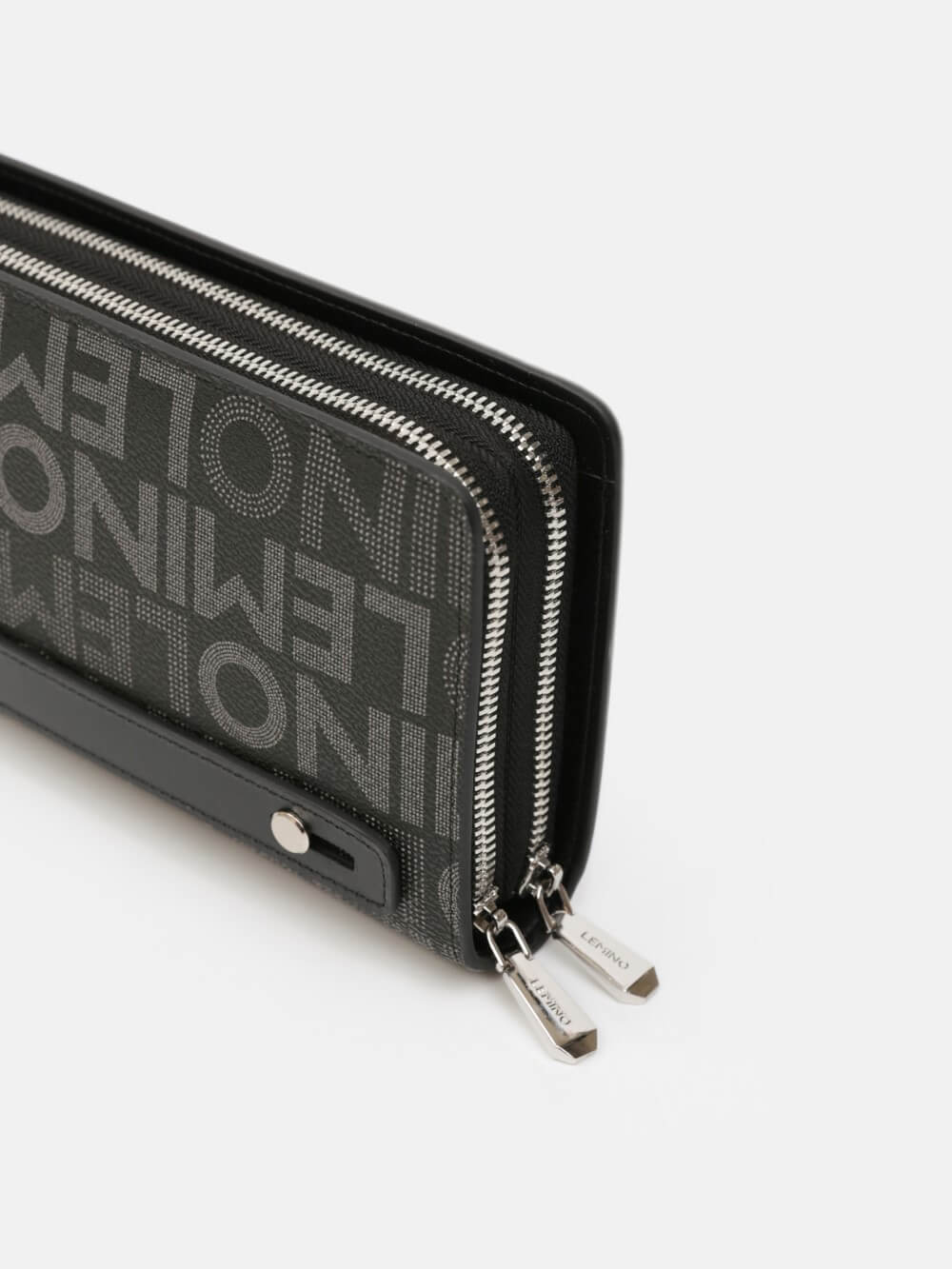 Bóp cầm tay LEMINO mang thiết kế hiện đại với họa tiết logo monogram đặc trưng, sang trọng và đường cắt may sắc nét. Kích thước vừa vặn giúp cất giữ điện thoại, ví tiền, giấy tờ hay thẻ tiện lợi. Dây đeo tay tháo rời linh hoạt, dễ mang theo khi đi làm hay dạo phố.