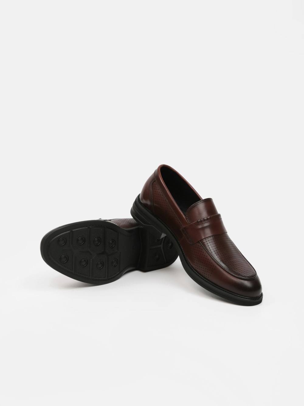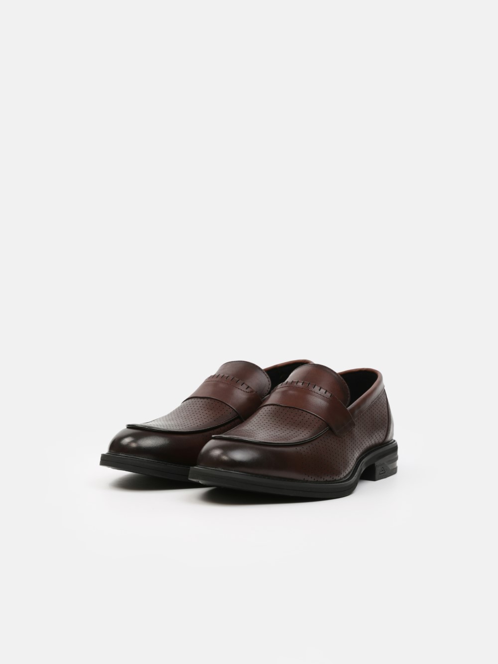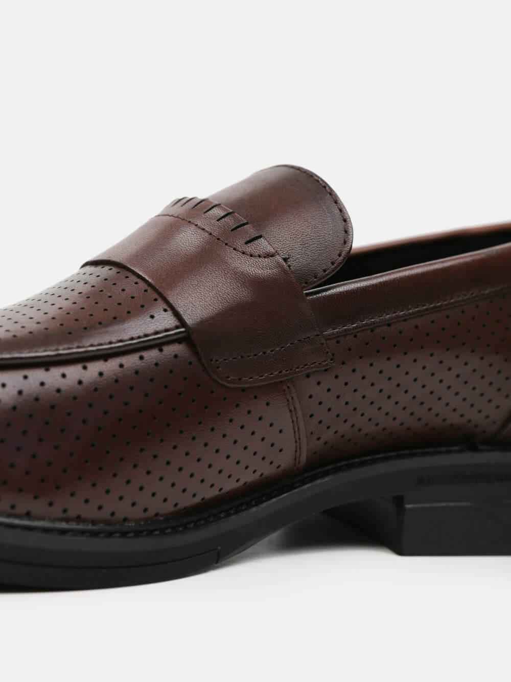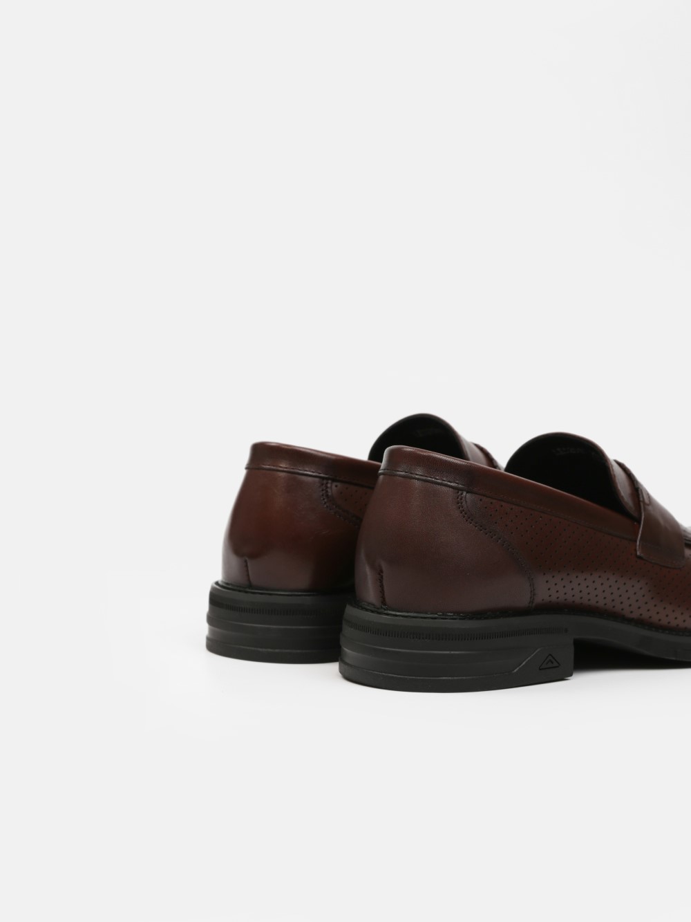 Giày lười công sở, thiết kế Penny Loafer đục lỗ thoáng khí. Form lịch lãm, đế cao su êm nhẹ, mang thoải mái cả ngày. Hai màu: Đen / Nâu, phù hợp đi làm – sự kiện – gặp gỡ.