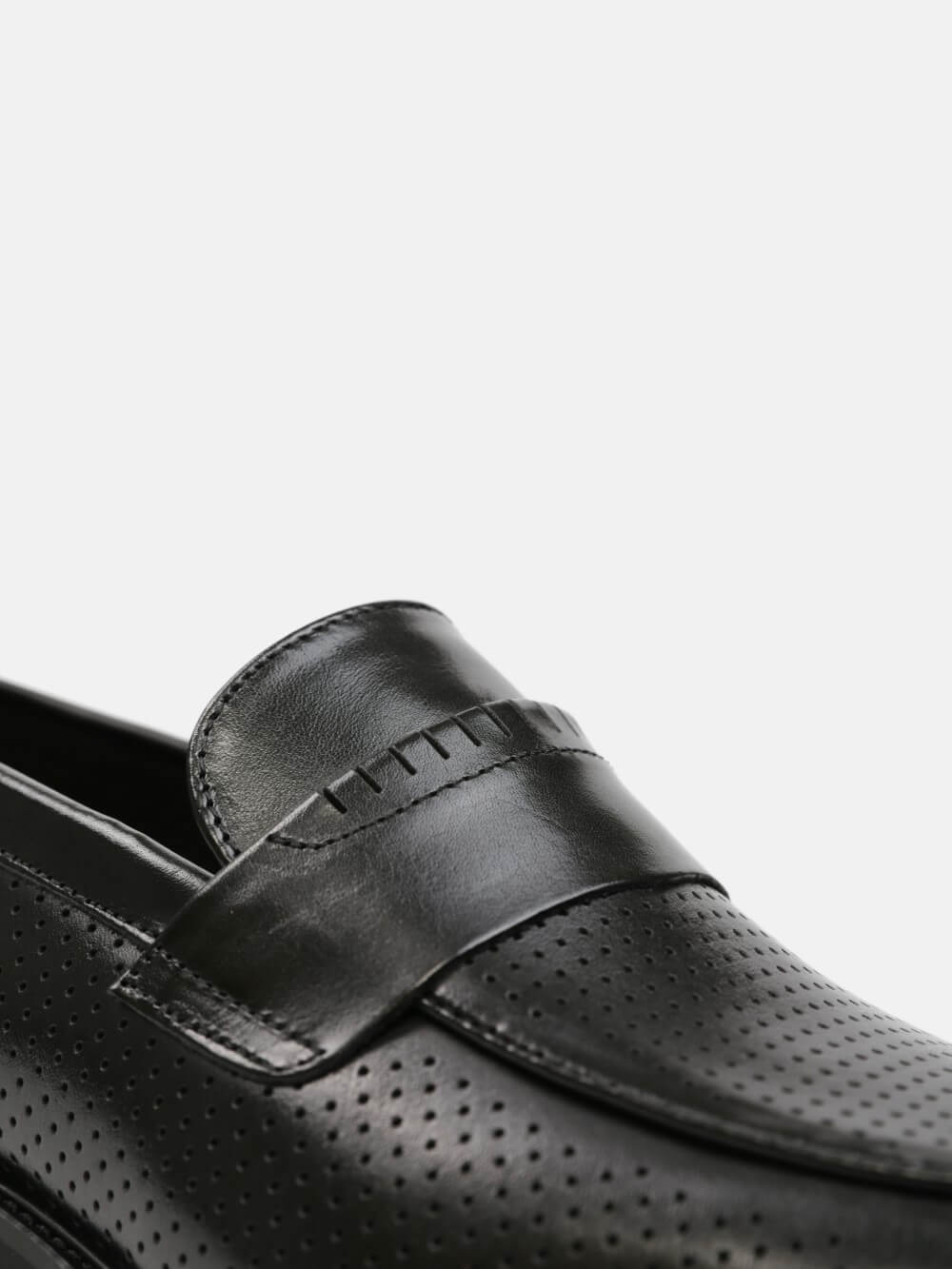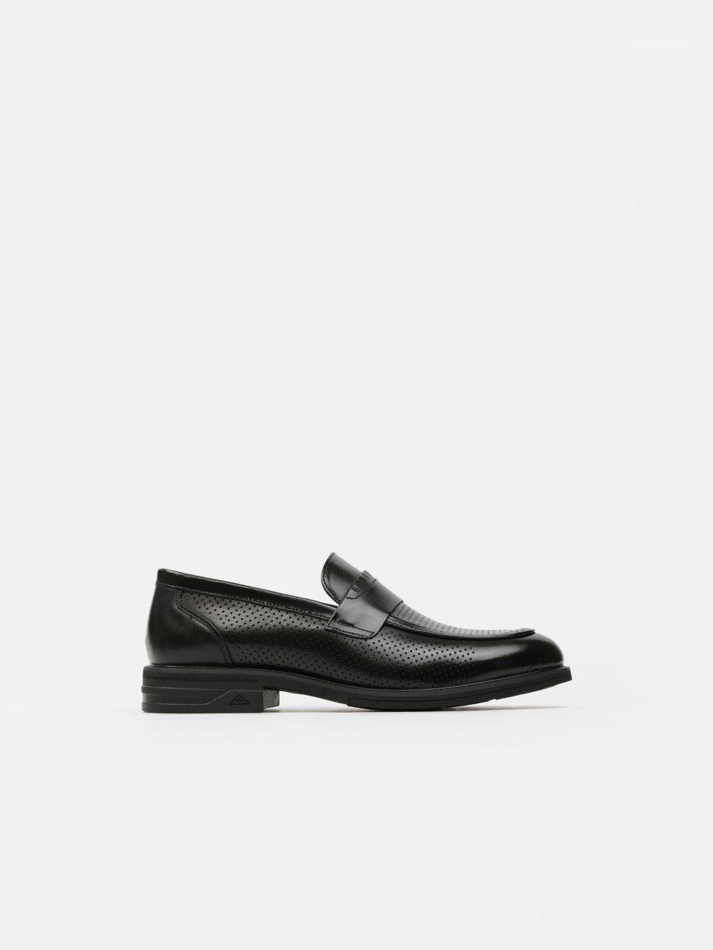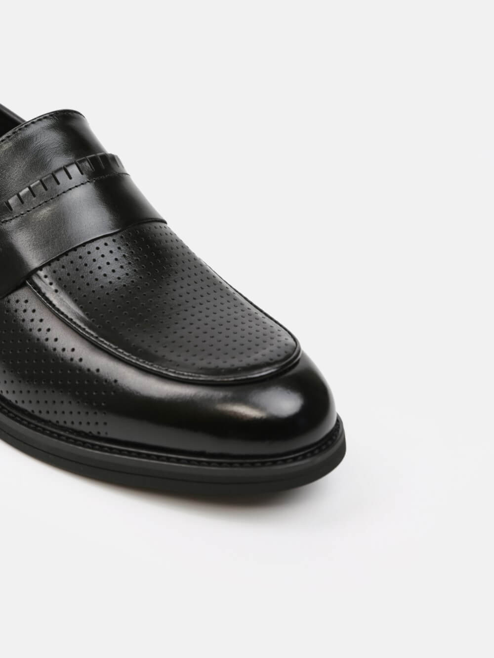 Giày lười công sở, thiết kế Penny Loafer đục lỗ thoáng khí. Form lịch lãm, đế cao su êm nhẹ, mang thoải mái cả ngày. Hai màu: Đen / Nâu, phù hợp đi làm – sự kiện – gặp gỡ.