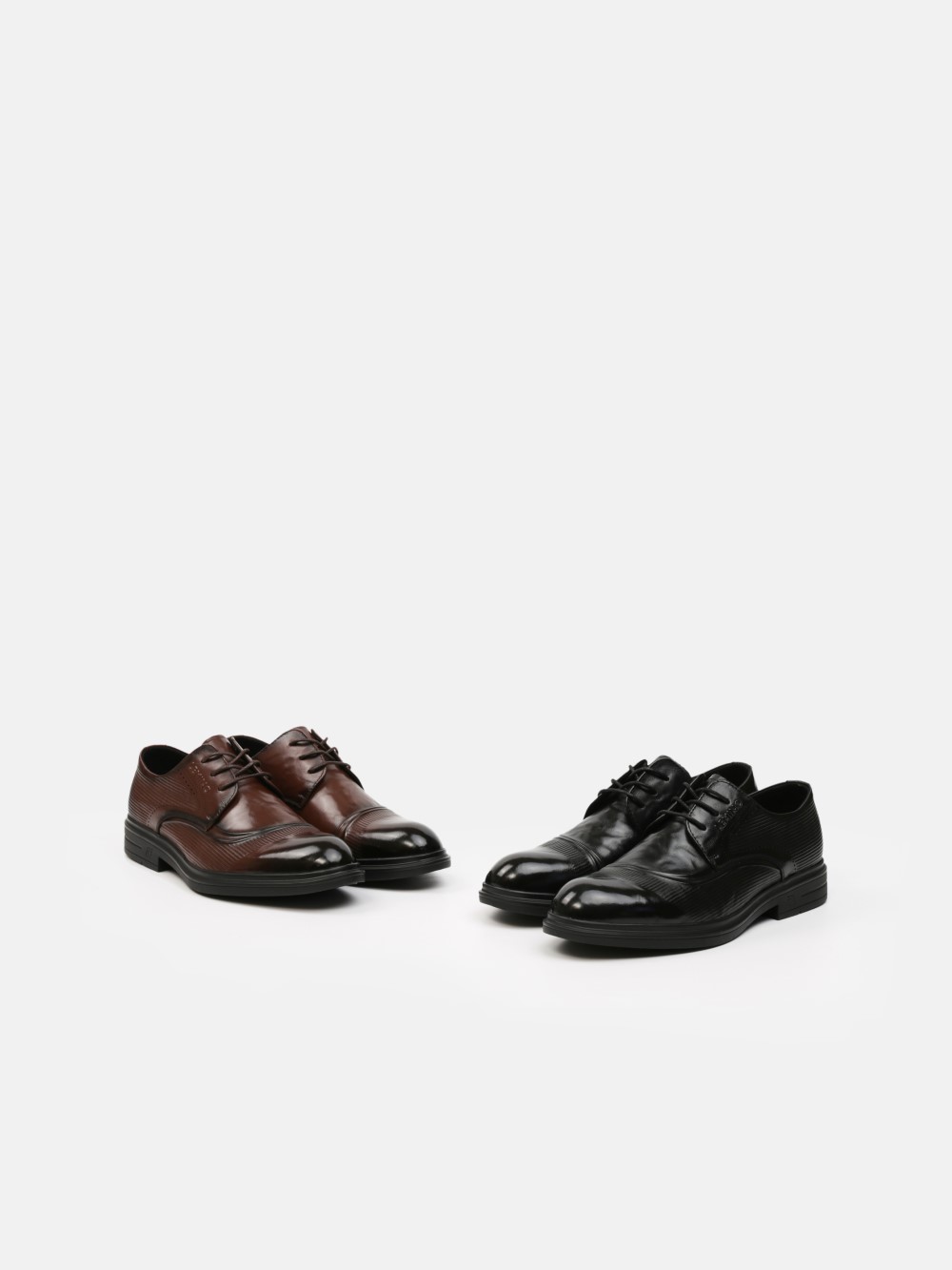 Giày tây nam Oxford da cao cấp, mũi đánh bóng sang trọng. Thiết kế da trơn kết hợp dập vân, đế cao su bền nhẹ chống trượt. Màu Đen / Nâu, phù hợp công sở và sự kiện.