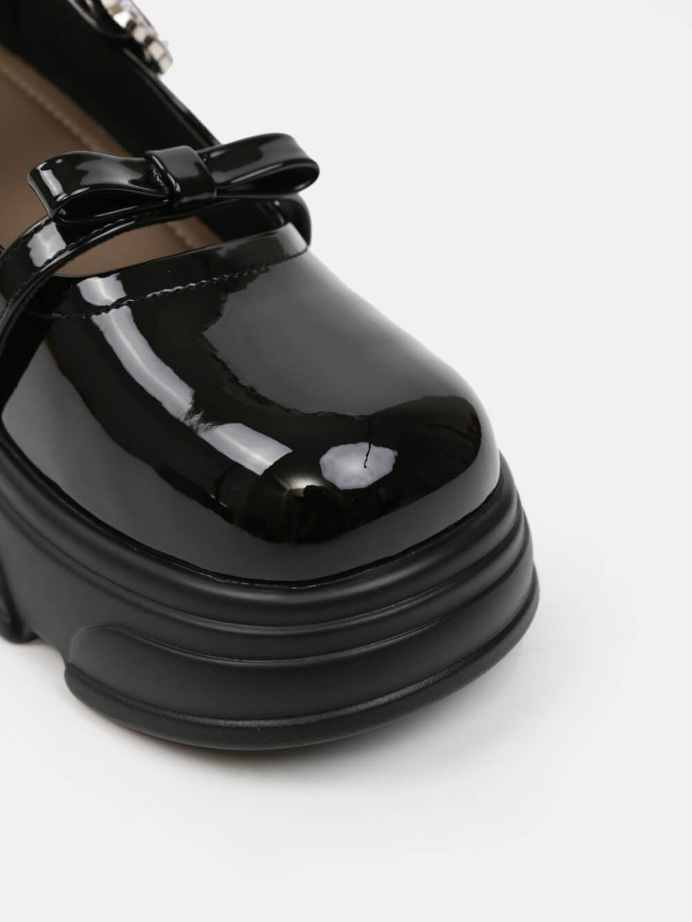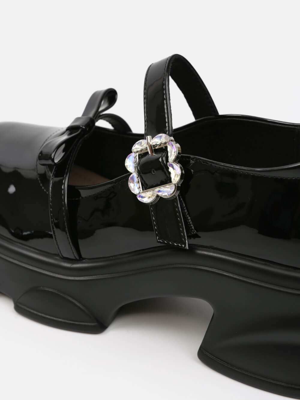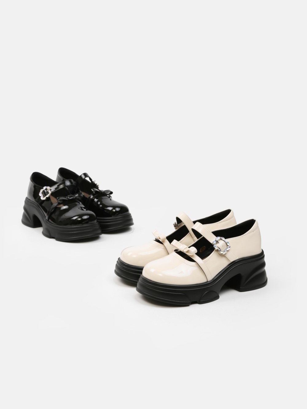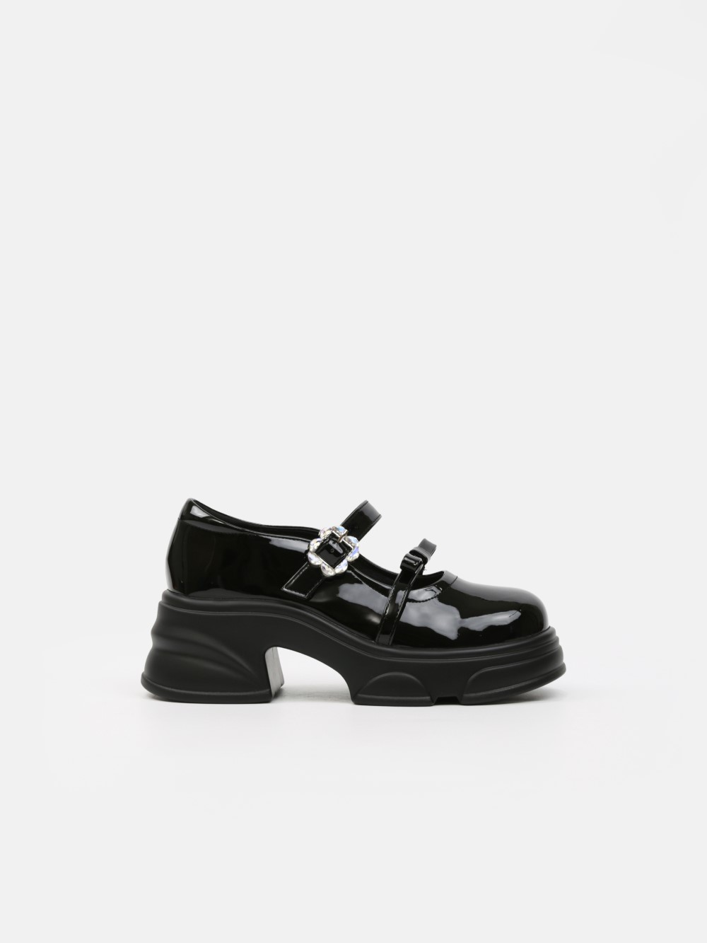 Đôi giày Mary Jane đế thô mang tinh thần hiện đại pha chút cổ điển, nổi bật với thiết kế khóa trang trí ánh kim và chất liệu da bóng sang trọng. Phần đế platform vững chãi tạo hiệu ứng tôn chiều cao nhưng vẫn êm ái khi di chuyển.