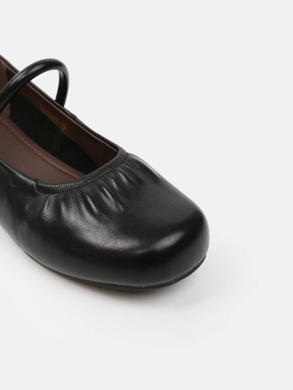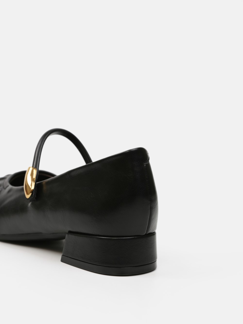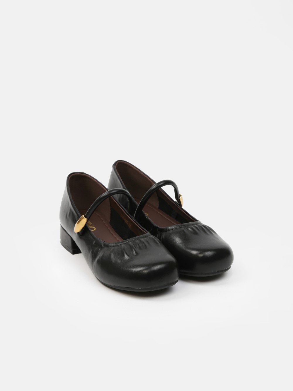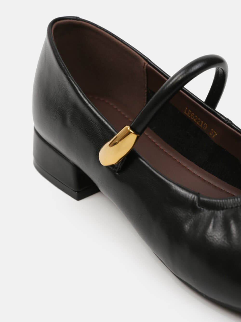 Đôi giày Mary Jane gót thấp mang vẻ đẹp cổ điển được làm mới bằng những đường nét mềm mại và tinh giản. Phần mũi bo tròn tạo cảm giác nhẹ nhàng, nữ tính, trong khi chi tiết dây quai ngang phối khóa kim loại ánh vàng trở thành điểm nhấn tinh tế, giúp tổng thể thêm sang trọng mà không phô trương.