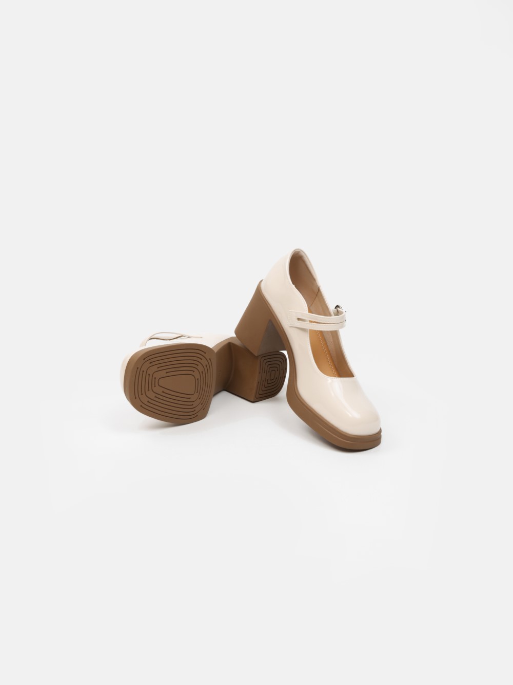 Đôi giày Mary Jane gót vuông mang phong cách cổ điển được làm mới với phom dáng hiện đại và chất liệu da bóng sang trọng. Thiết kế mũi tròn mềm mại kết hợp quai ngang cài khóa kim loại tạo điểm nhấn tinh tế, vừa giúp cố định bàn chân chắc chắn, vừa tăng nét nữ tính cho tổng thể.
