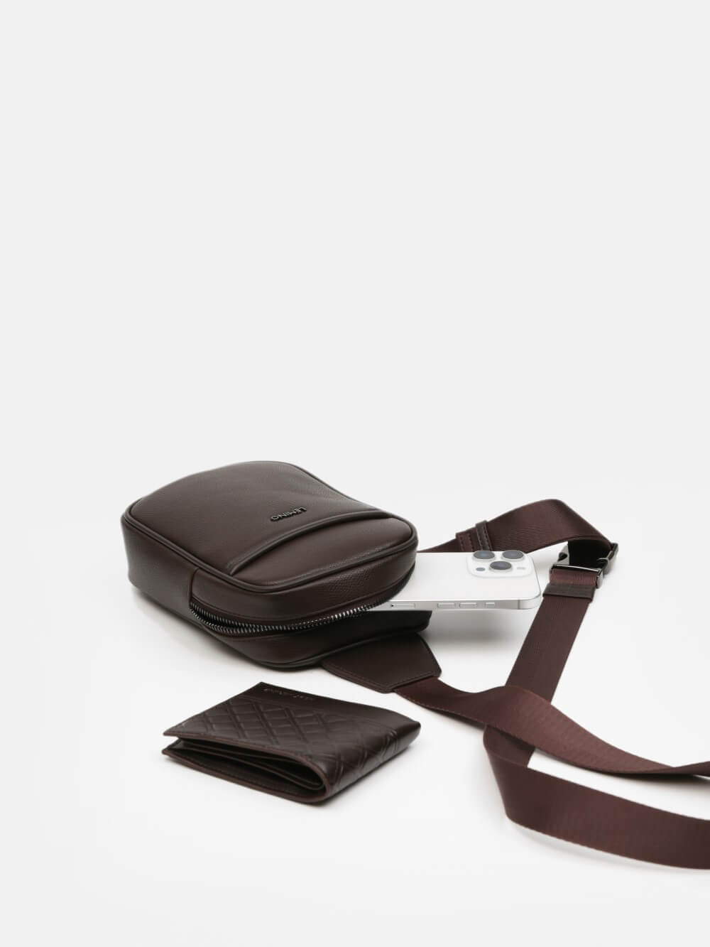 Thiết kế túi đeo chéo nam LEMINO mang phom dáng đứng nhỏ gọn, đường nét bo tròn tinh tế giúp tổng thể trở nên hiện đại nhưng không cứng nhắc. Bề mặt da trơn cao cấp, kết hợp logo kim loại tối giản – tạo nên vẻ ngoài thanh lịch, phù hợp với nhiều phong cách khác nhau.