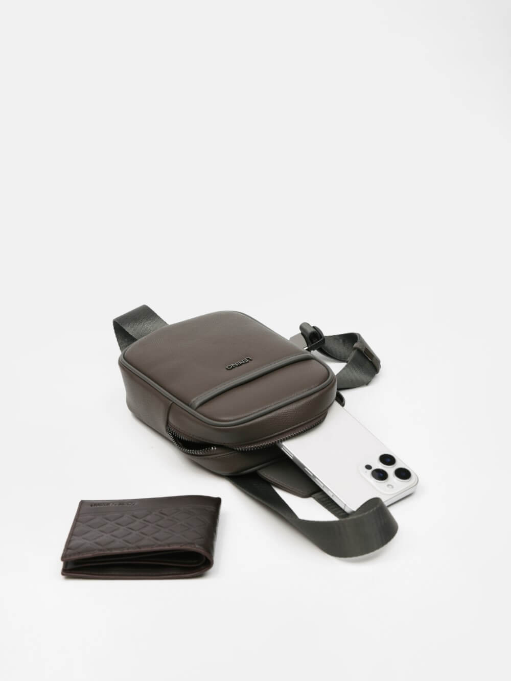 Thiết kế túi đeo chéo nam LEMINO mang phom dáng đứng nhỏ gọn, đường nét bo tròn tinh tế giúp tổng thể trở nên hiện đại nhưng không cứng nhắc. Bề mặt da trơn cao cấp, kết hợp logo kim loại tối giản – tạo nên vẻ ngoài thanh lịch, phù hợp với nhiều phong cách khác nhau.