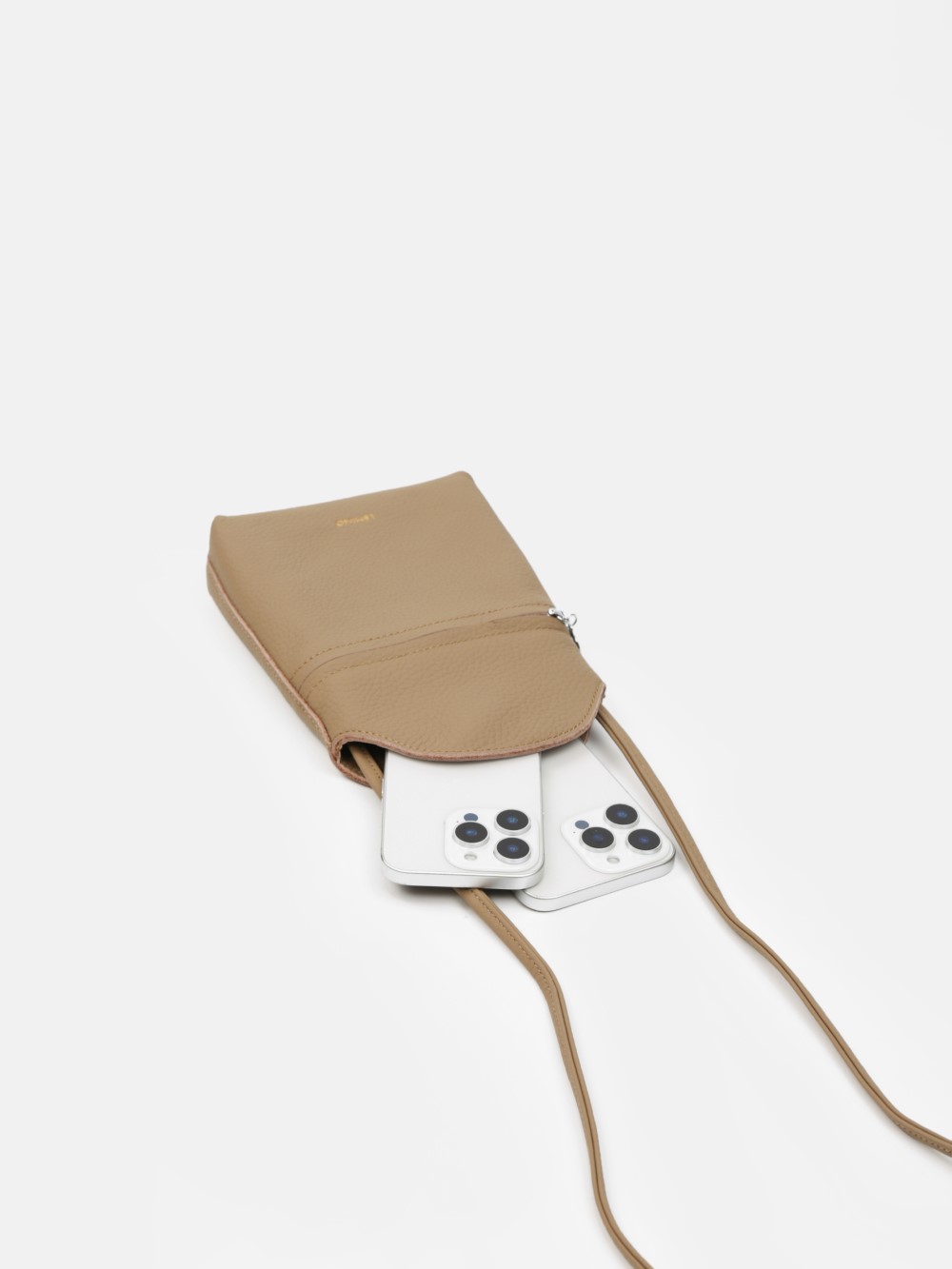 Túi đeo điện thoại LEMINO tối giảnThiết kế mini dáng đứng nhỏ gọn, phối khóa kéo phía trước. Da mềm, đeo chéo nhẹ nhàng – tiện lợi cho nàng mang theo điện thoại và vật dụng nhỏ hằng ngày.