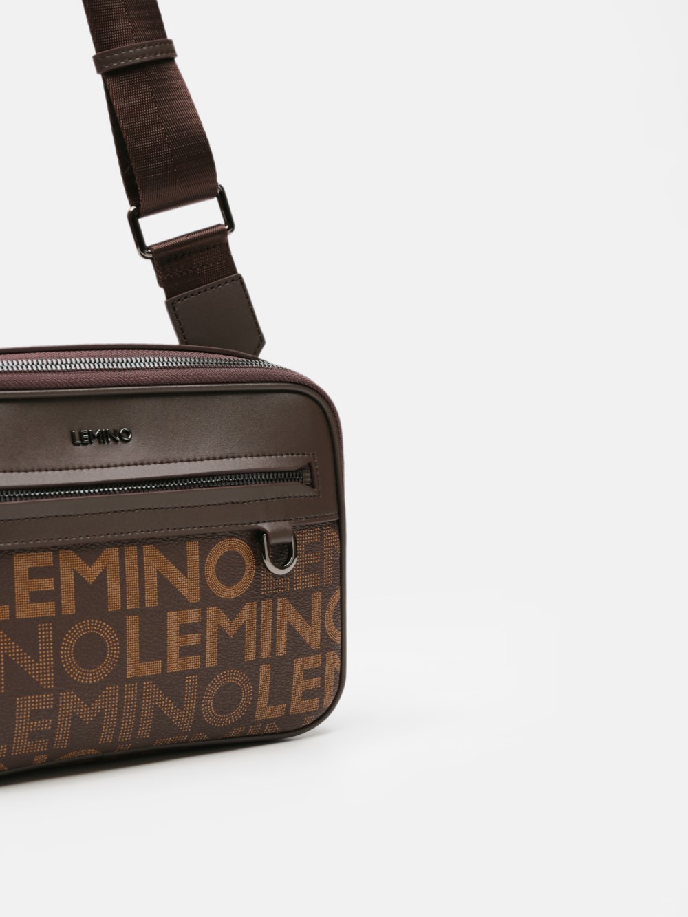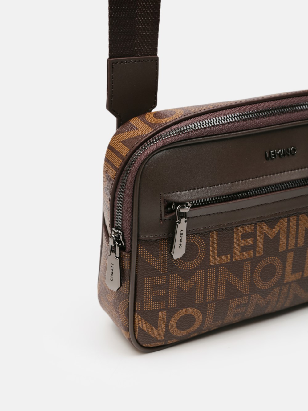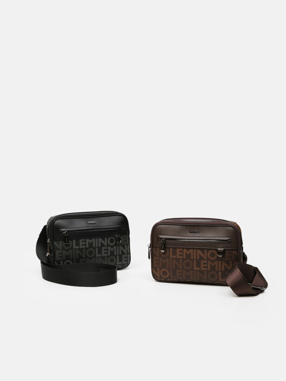 Túi đeo chéo nam LEMINO Monogram Canvas dáng camera bag gọn chắc, phối nắp trơn nam tính, có ngăn trước khóa kéo tiện dụng. Dây đeo bản to chỉnh được, đeo êm vai; một số phiên bản kèm túi phụ mini gắn dây.
