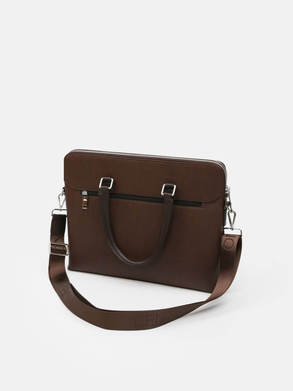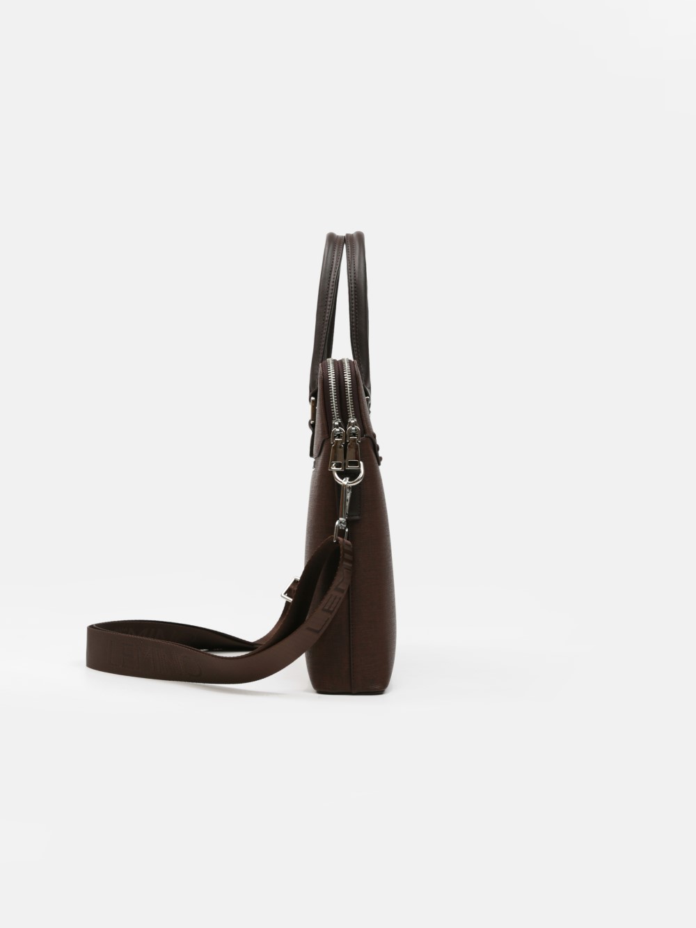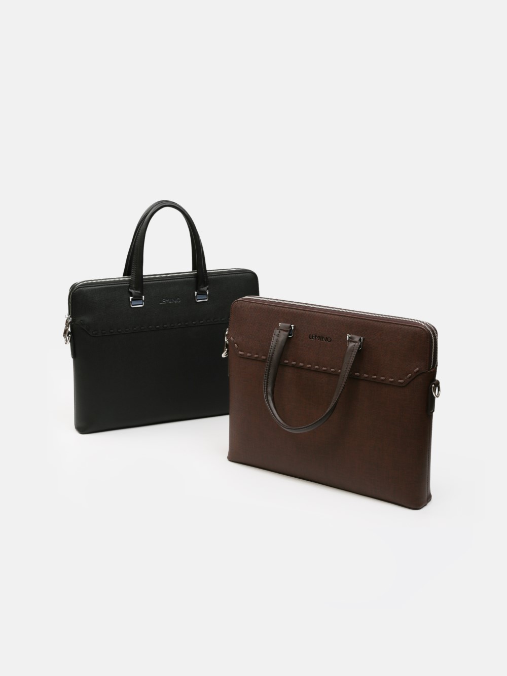 Túi công sở dáng briefcase LEMINO – phom đứng, tối giản lịch lãm. Thiết kế bản mỏng gọn, tay xách đôi chắc chắn, khoá kéo an toàn; điểm nhấn đai ngang với đinh tán tinh tế. Phù hợp mang đi làm, đi họp, đựng tài liệu và thiết bị mỏng