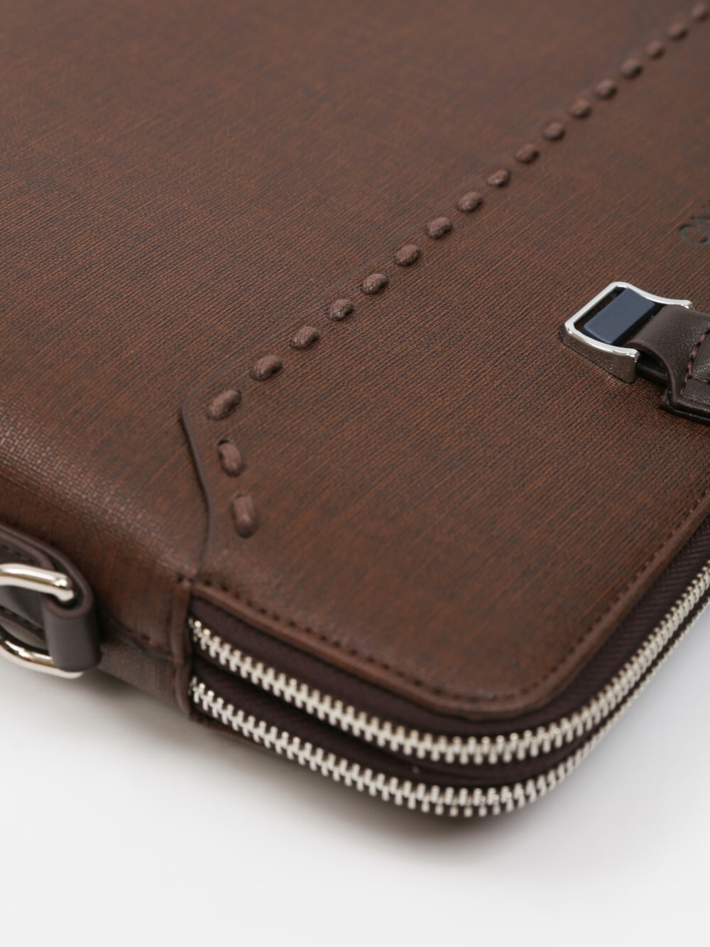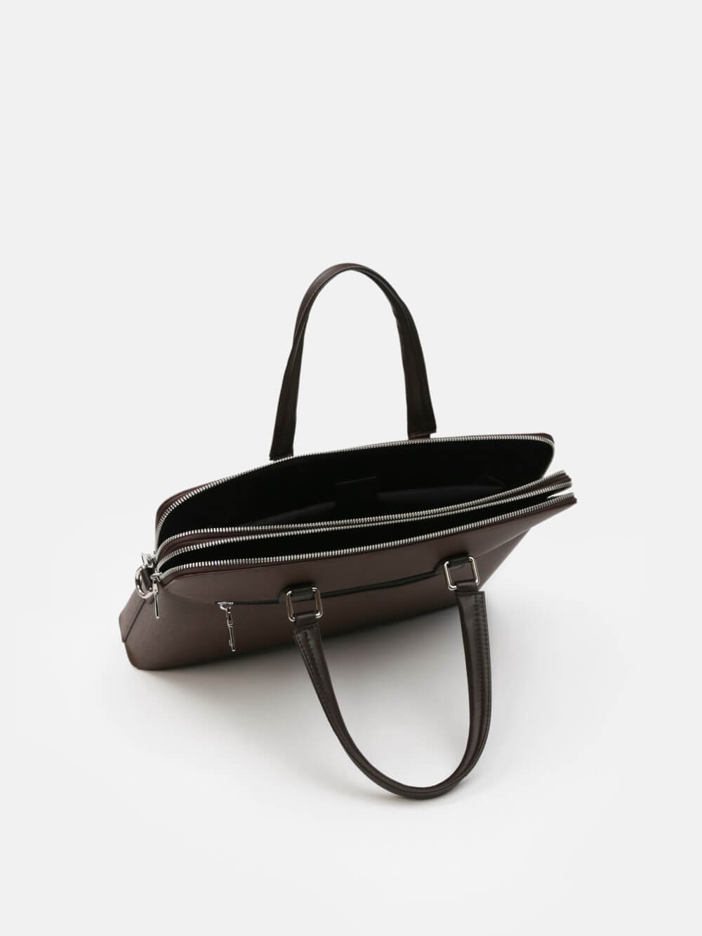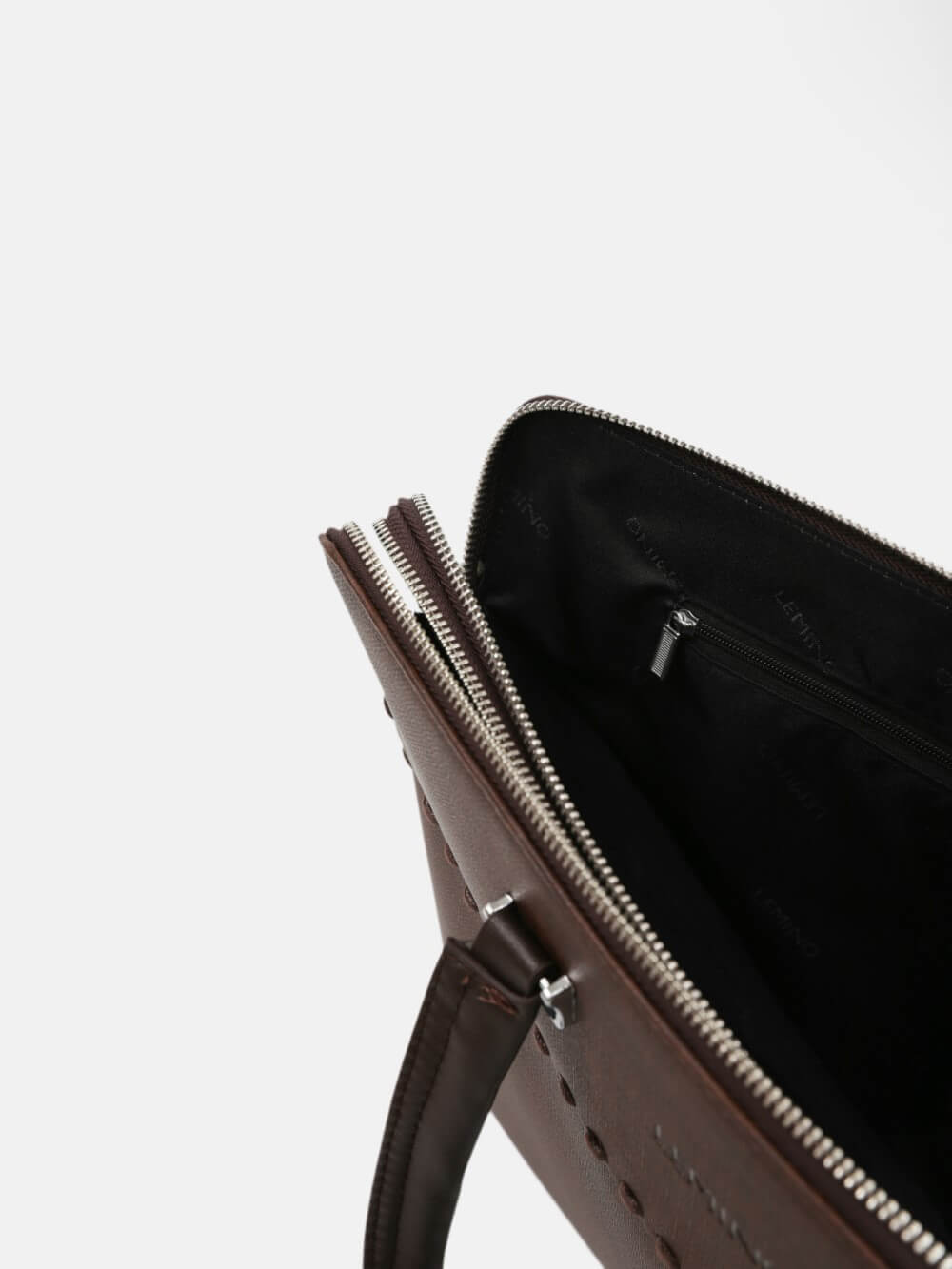Túi công sở dáng briefcase LEMINO – phom đứng, tối giản lịch lãm. Thiết kế bản mỏng gọn, tay xách đôi chắc chắn, khoá kéo an toàn; điểm nhấn đai ngang với đinh tán tinh tế. Phù hợp mang đi làm, đi họp, đựng tài liệu và thiết bị mỏng