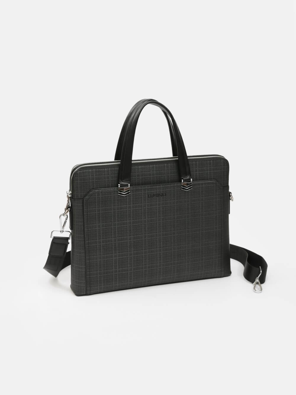 Túi công sở dáng briefcase LEMINO – phom đứng, tối giản lịch lãm. Thi��t kế bản mỏng gọn, tay xách đôi chắc chắn, khoá kéo an toàn; điểm nhấn đai ngang với đinh tán tinh tế. Phù hợp mang đi làm, đi họp, đựng tài liệu và thiết bị mỏng