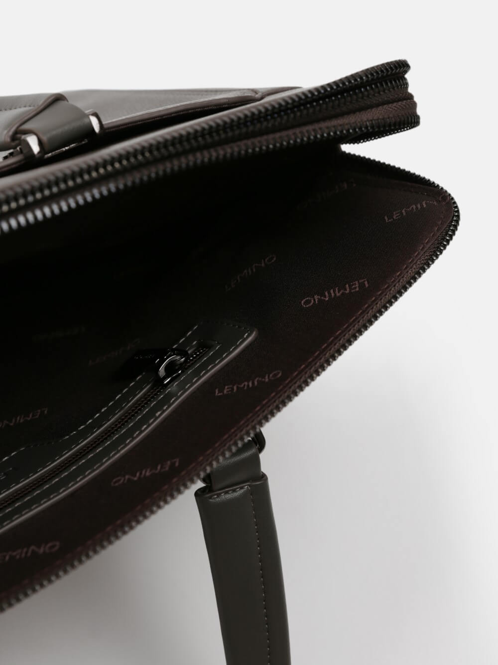 Cặp nam phom hộp mảnh mai với bề mặt da hạt chống trầy nhẹ, viền bo tinh gọn và phụ kiện kim loại màu gunmetal. Ngăn chính chứa tài liệu A4, laptop mỏng 13–14", kèm các ngăn phụ cho bút, thẻ, cáp; phía trước có ngăn nhanh tay. Đi kèm quai xách đôi và dây đeo tháo rời bản rộng cho hai cách mang linh hoạt. Dễ phối từ suit công sở đến smart–casual cuối tuần, giữ hình ảnh gọn gàng, chuyên nghiệp trong mọi lịch trình.
