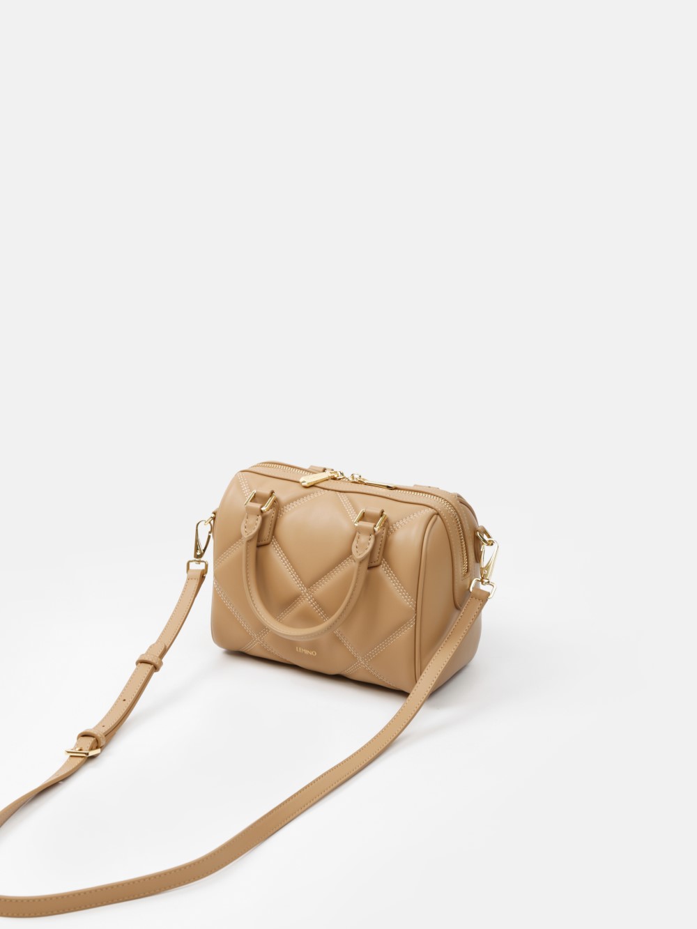 Phom hộp bo tròn sang gọn, bề mặt chần trám nổi tạo hiệu ứng cao cấp. Miệng túi khóa kéo 2 đầu, quai xách đôi thanh lịch, có khoen gắn dây đeo.