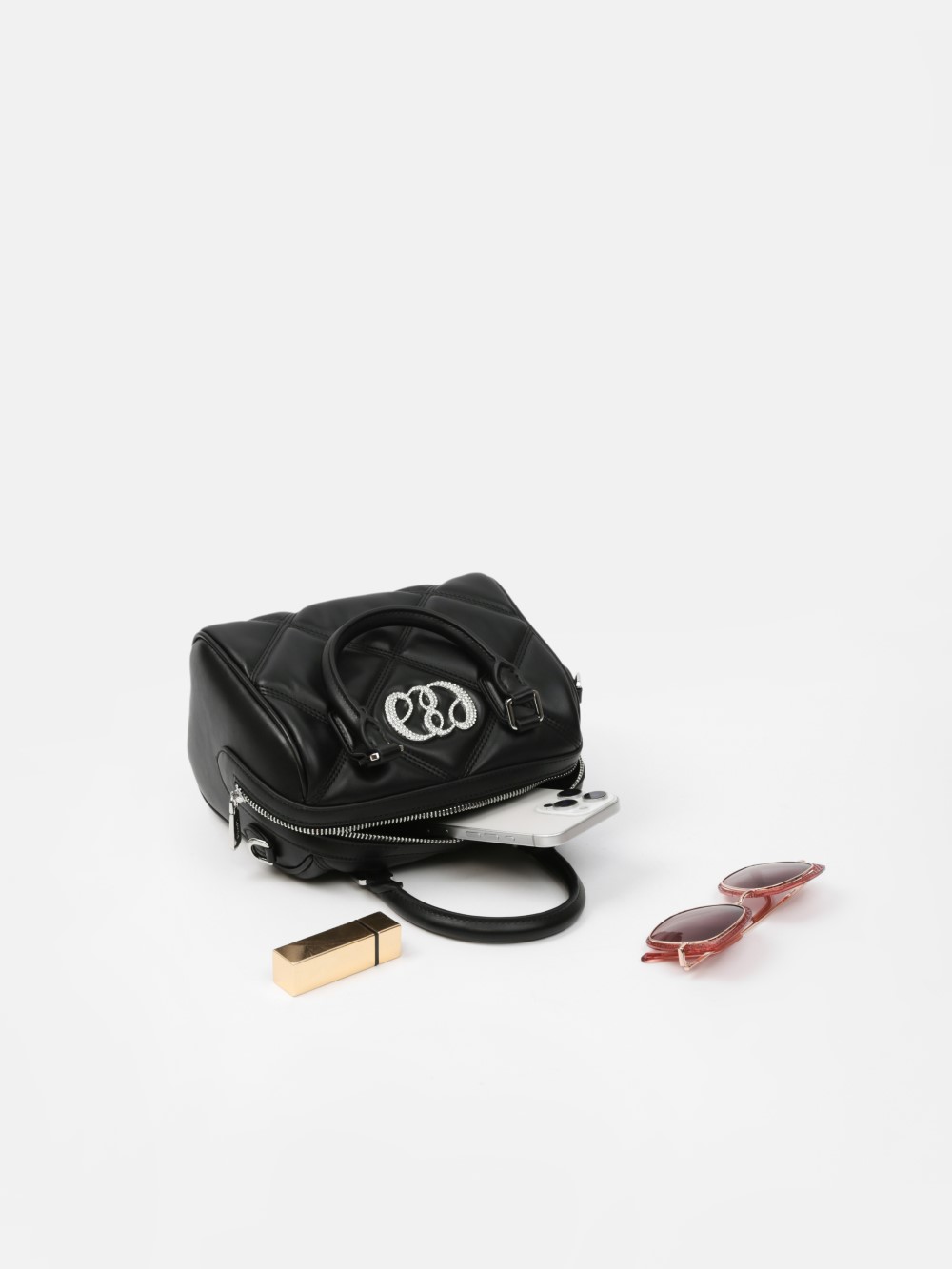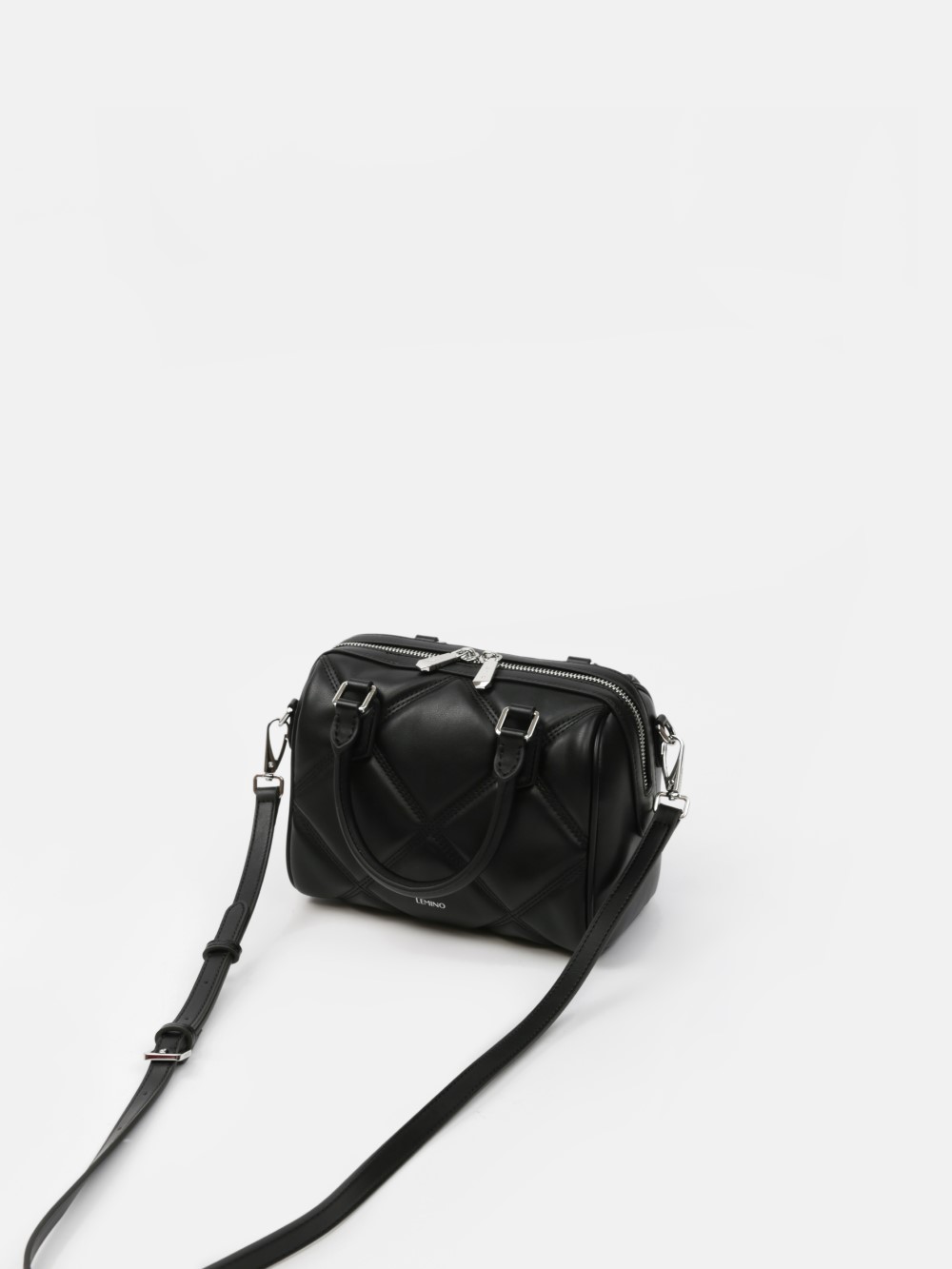 Phom hộp bo tròn sang gọn, bề mặt chần trám nổi tạo hiệu ứng cao cấp. Miệng túi khóa kéo 2 đầu, quai xách đôi thanh lịch, có khoen gắn dây đeo.