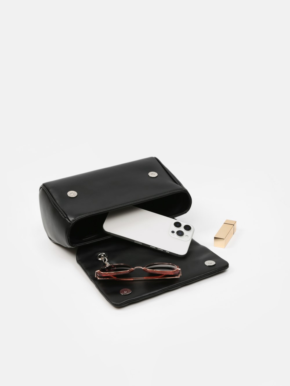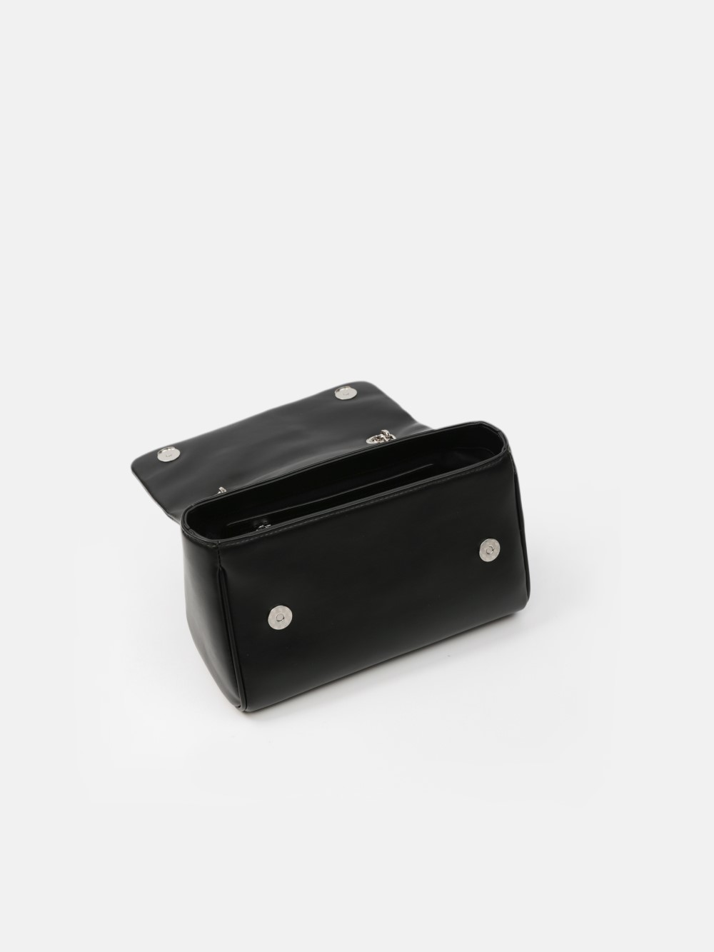 Dáng chữ nhật, nắp gập thanh lịch, điểm nhấn logo kim loại sang. Dây đeo xích kết hợp dây da điều chỉnh, linh hoạt đeo vai hoặc đeo chéo.
