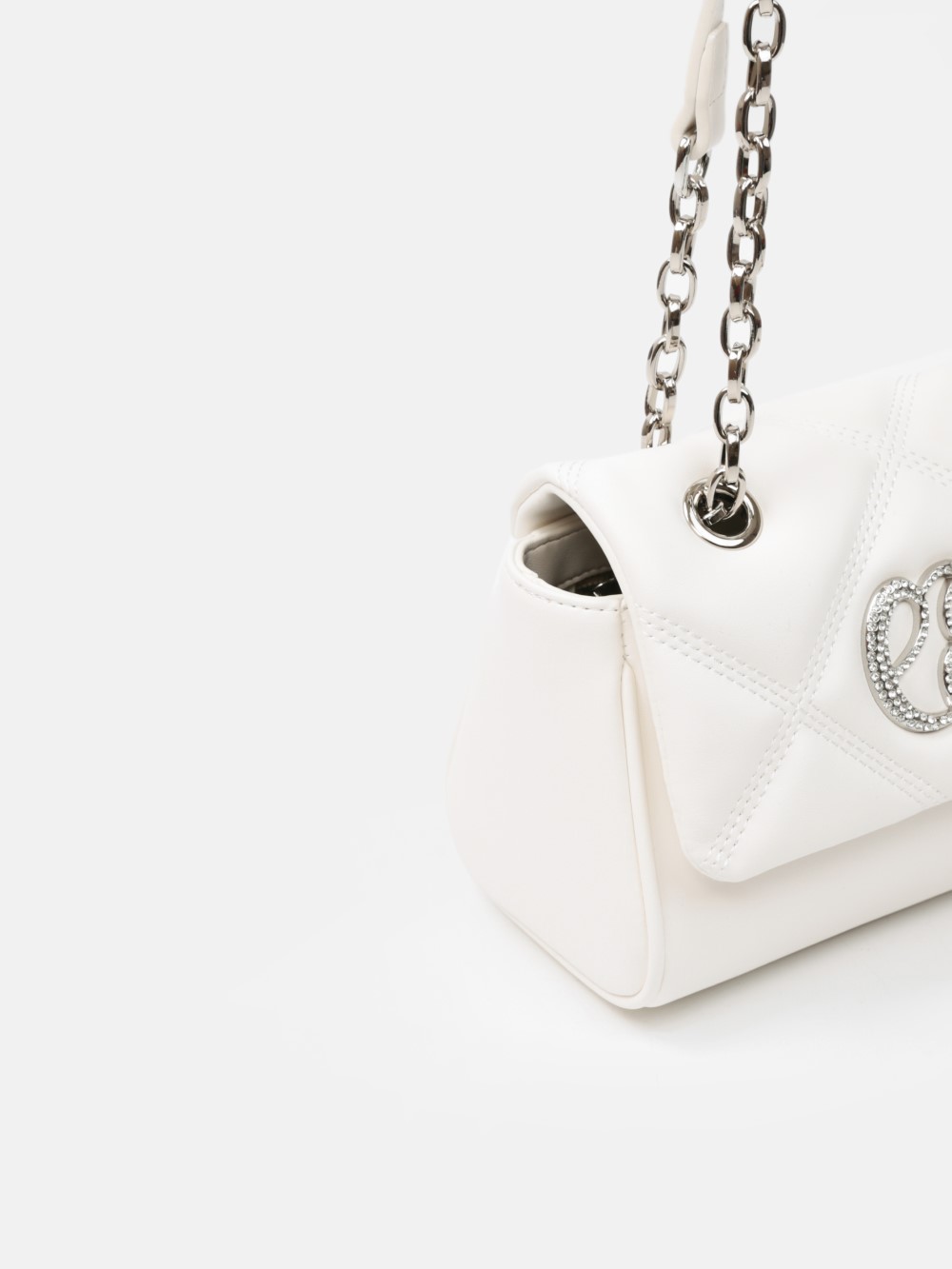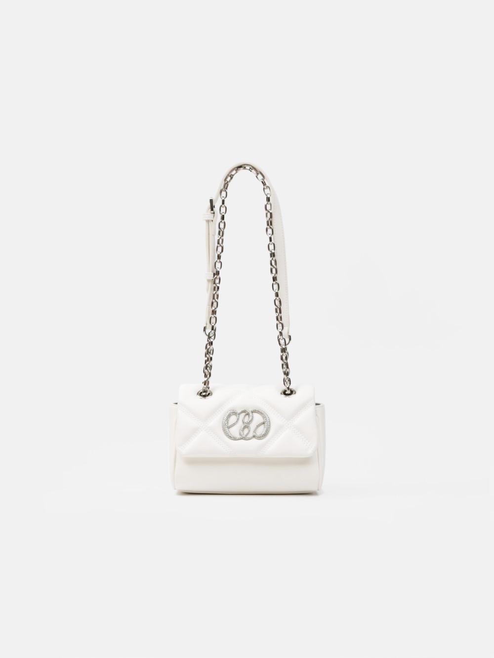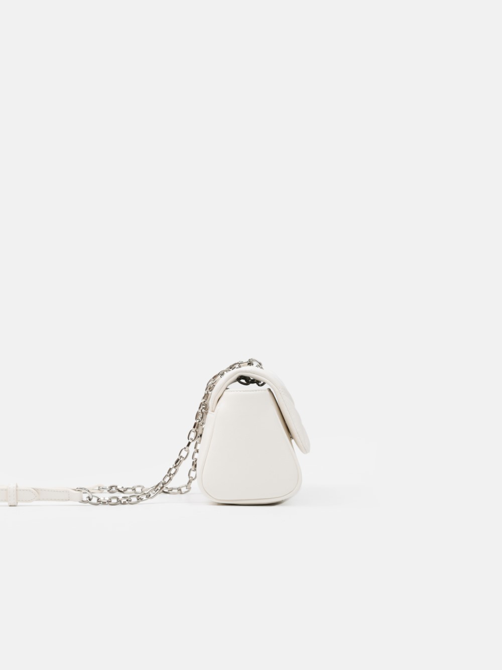 Nắp gập thanh lịch, điểm nhấn logo kim loại sang. Dây đeo xích kết hợp dây da điều chỉnh, linh hoạt đeo vai hoặc đeo chéo.