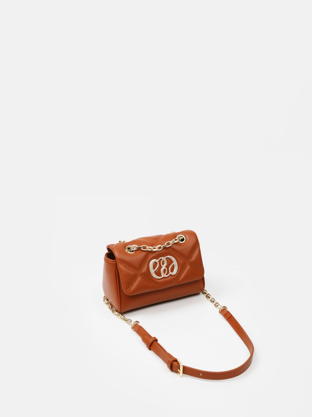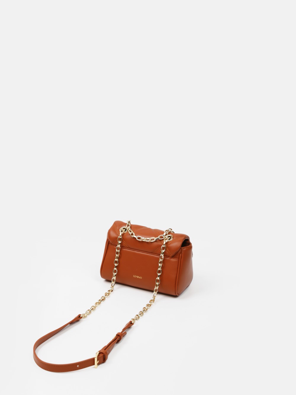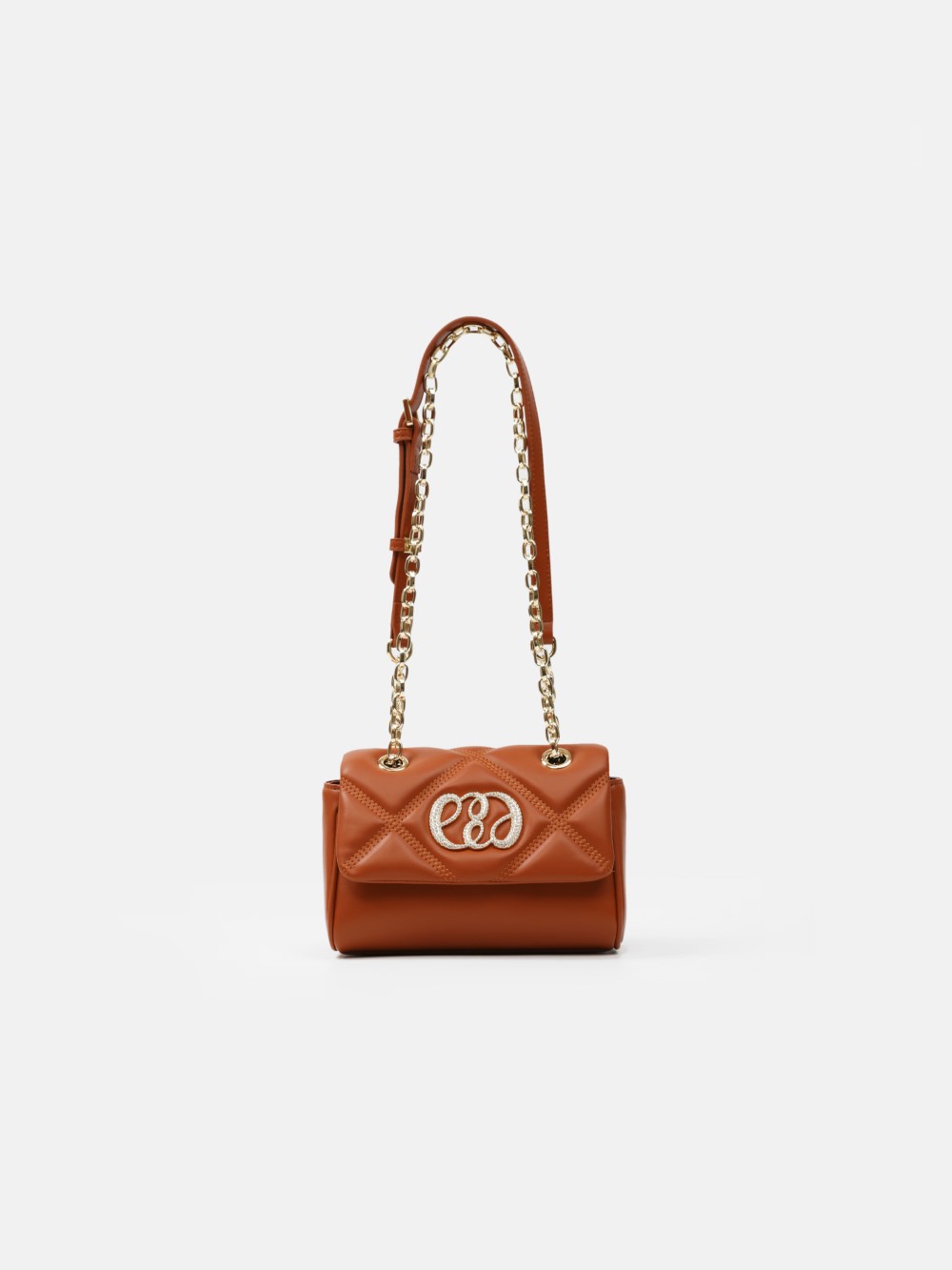 Nắp gập thanh lịch, điểm nhấn logo kim loại sang. Dây đeo xích kết hợp dây da điều chỉnh, linh hoạt đeo vai hoặc đeo chéo.