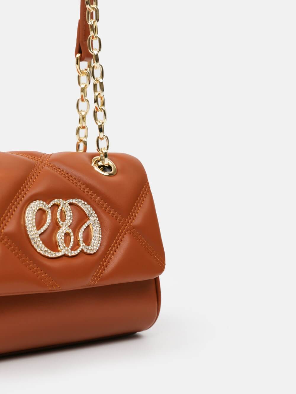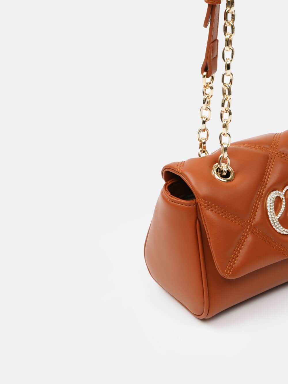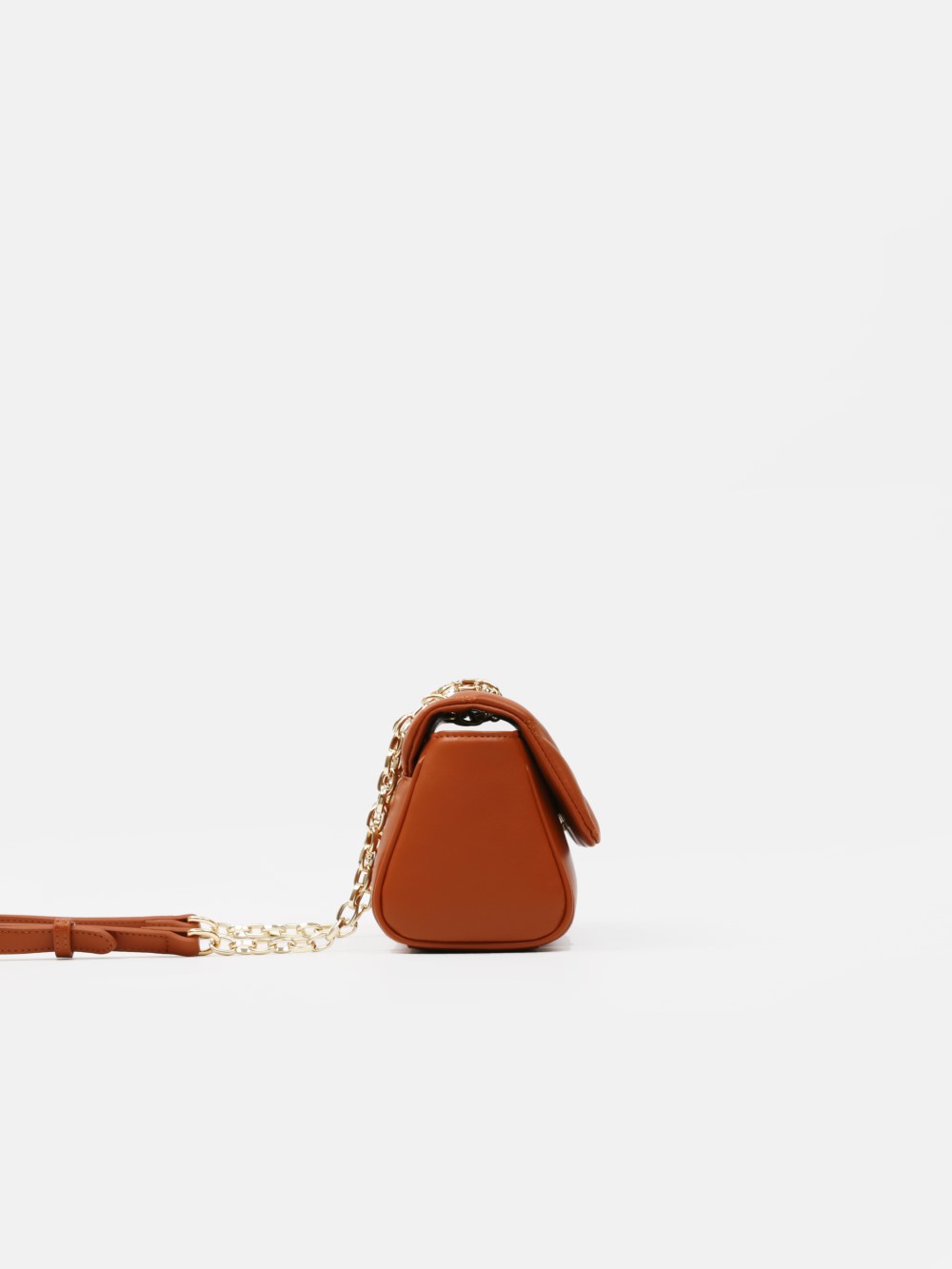 Nắp gập thanh lịch, điểm nhấn logo kim loại sang. Dây đeo xích kết hợp dây da điều chỉnh, linh hoạt đeo vai hoặc đeo chéo.