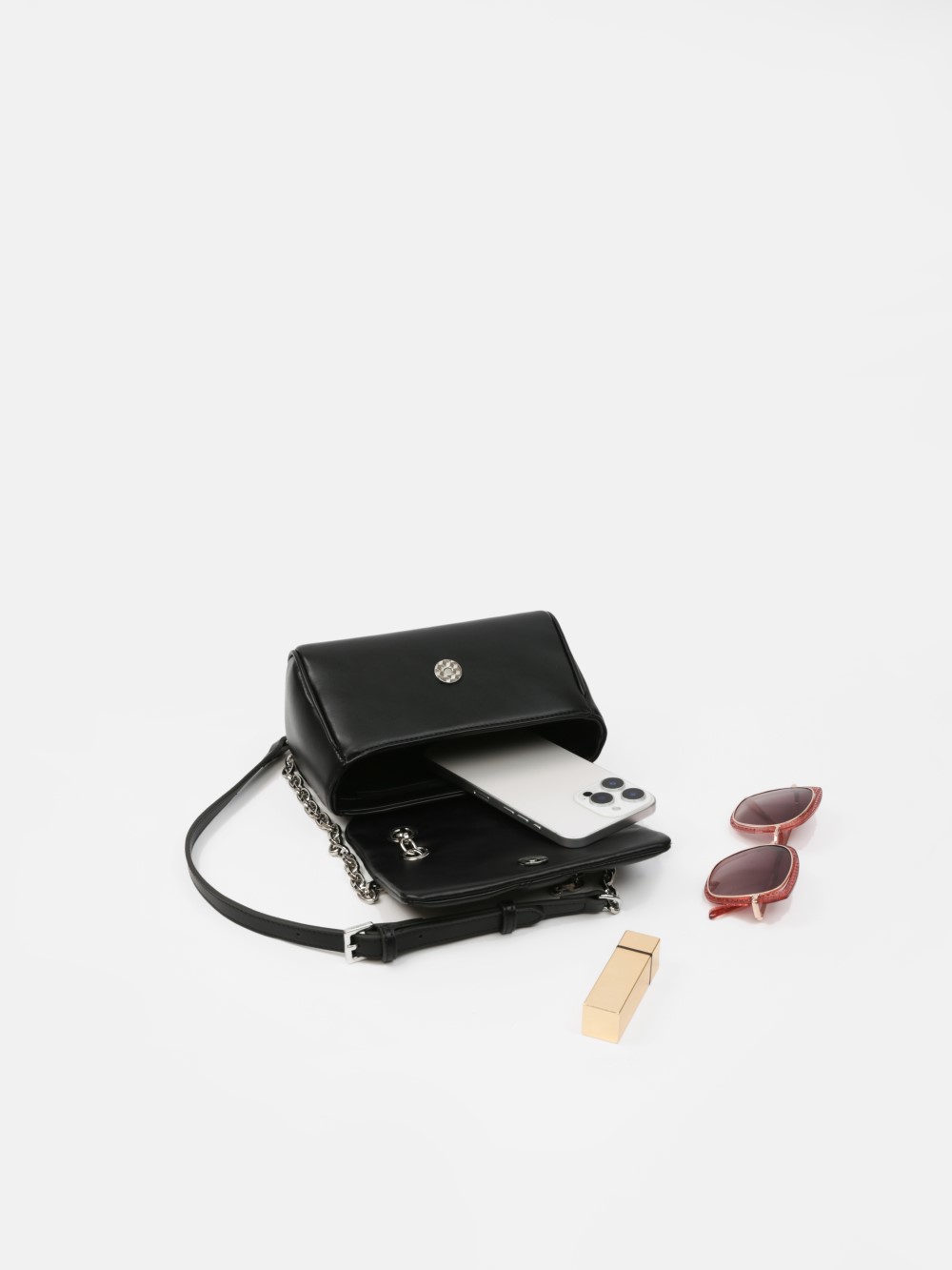 Túi flap chần trám – dây xích phối da Nắp gập thanh lịch, điểm nhấn logo kim loại sang. Dây đeo xích kết hợp dây da điều chỉnh, linh hoạt đeo vai hoặc đeo chéo.