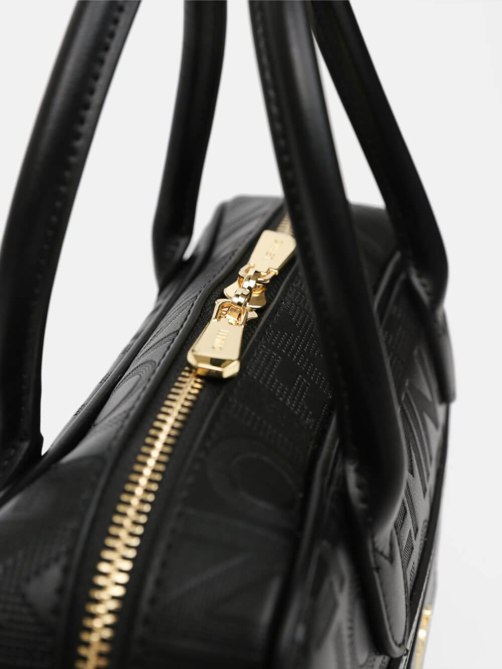 Chiếc túi mang thiết kế top handle bag dáng hộp hiện đại, nổi bật với bề mặt dập monogram toàn thân – tạo hiệu ứng thị giác sang trọng và đậm dấu ấn thương hiệu. Phom túi cứng cáp, gọn gàng giúp tổng thể luôn giữ được sự chỉn chu trong mọi hoàn cảnh.