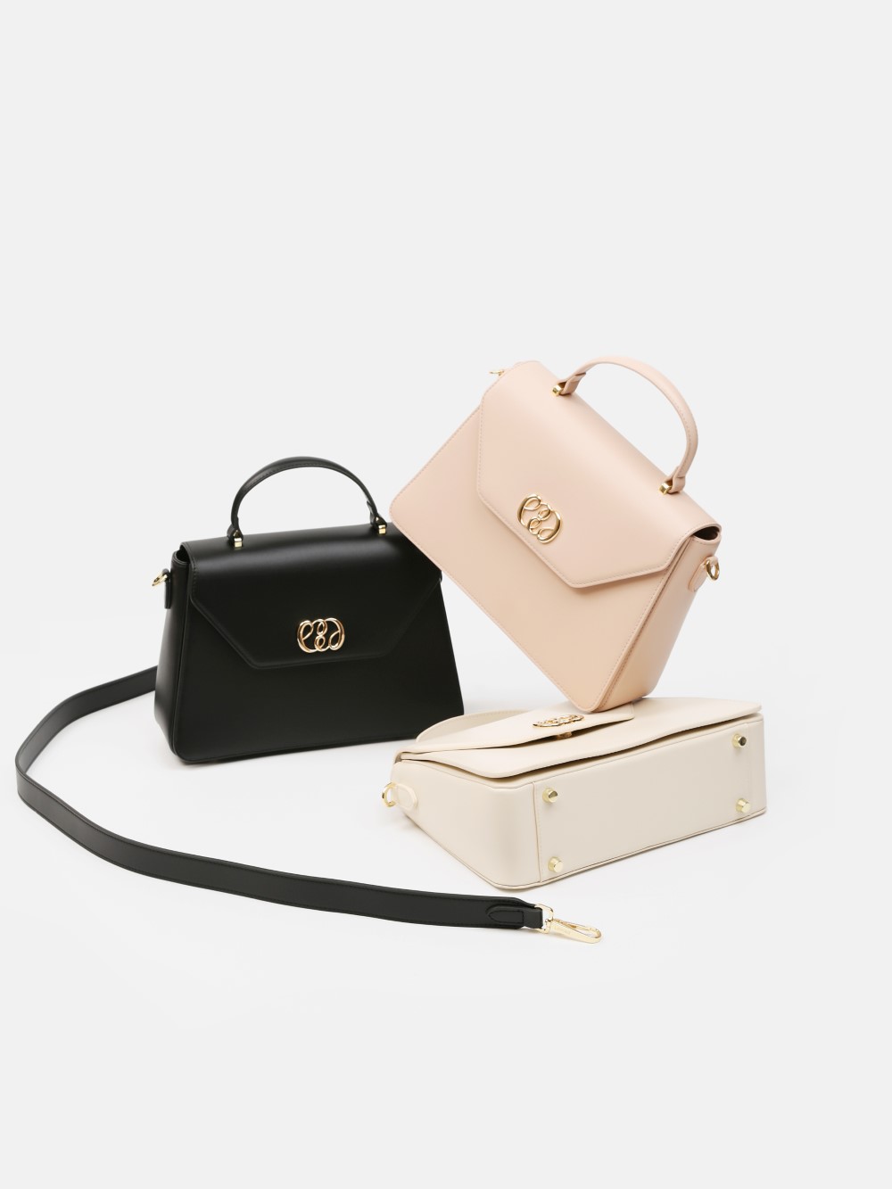 Túi xách top-handle logo ánh vàng sang trọng, thiết kế thanh lịch – vừa cầm tay, vừa đeo chéo linh hoạt. Form dáng vững, ngăn rộng tiện dụng, dễ phối cùng mọi trang phục từ công sở đến dạo phố, tôn lên vẻ tinh tế và hiện đại của nàng.