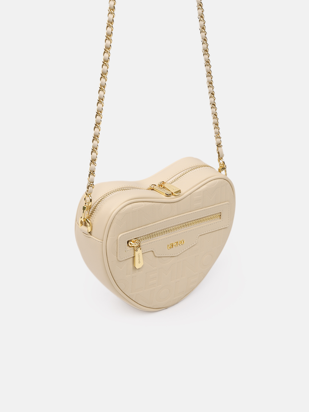 Túi xách nữ thời trang LEMINO Monogram Embossed LE22378 nổi bật với dáng túi trái tim mềm mại, da dập monogram tinh xảo và chi tiết kim loại ánh vàng sang trọng