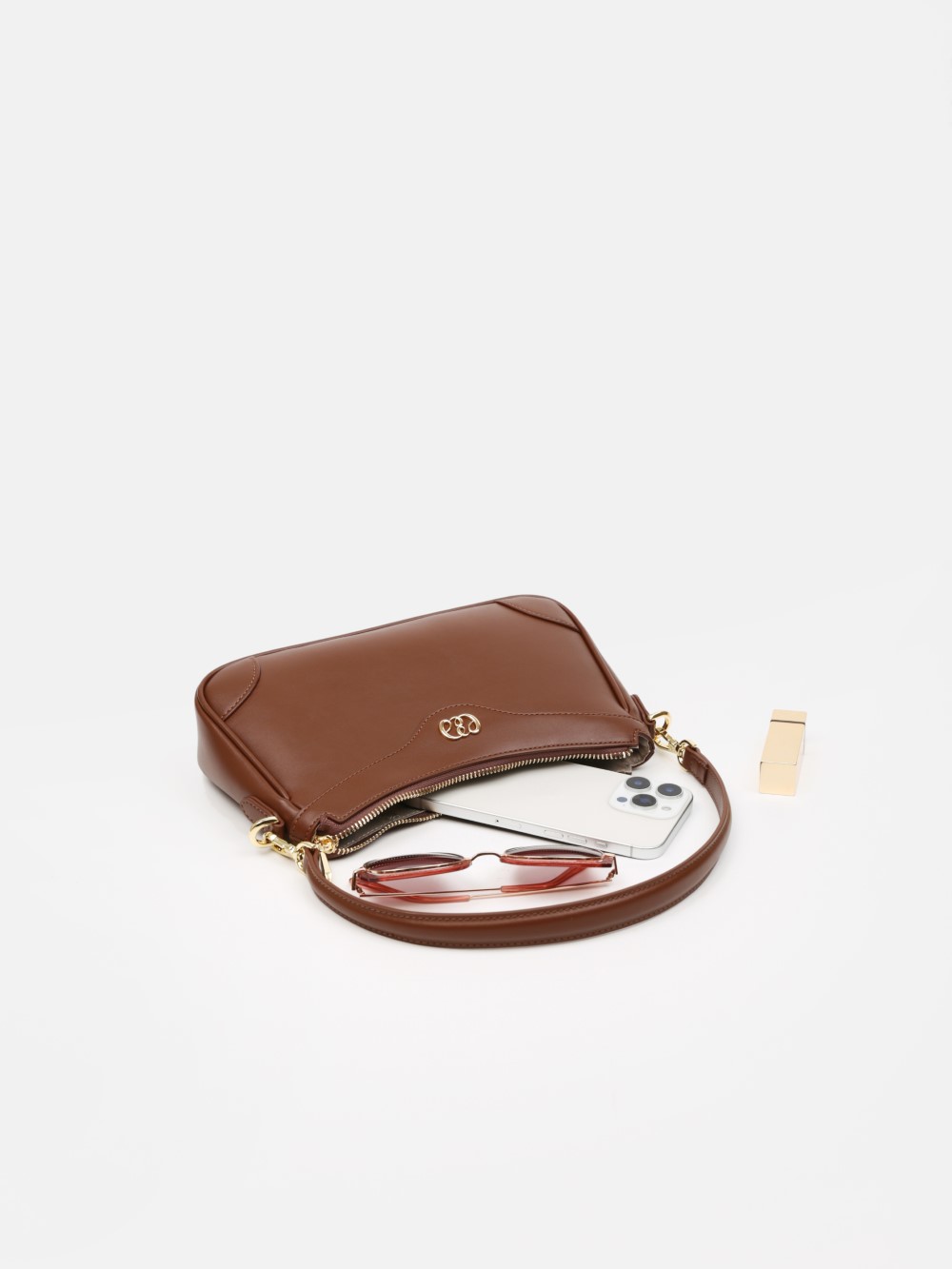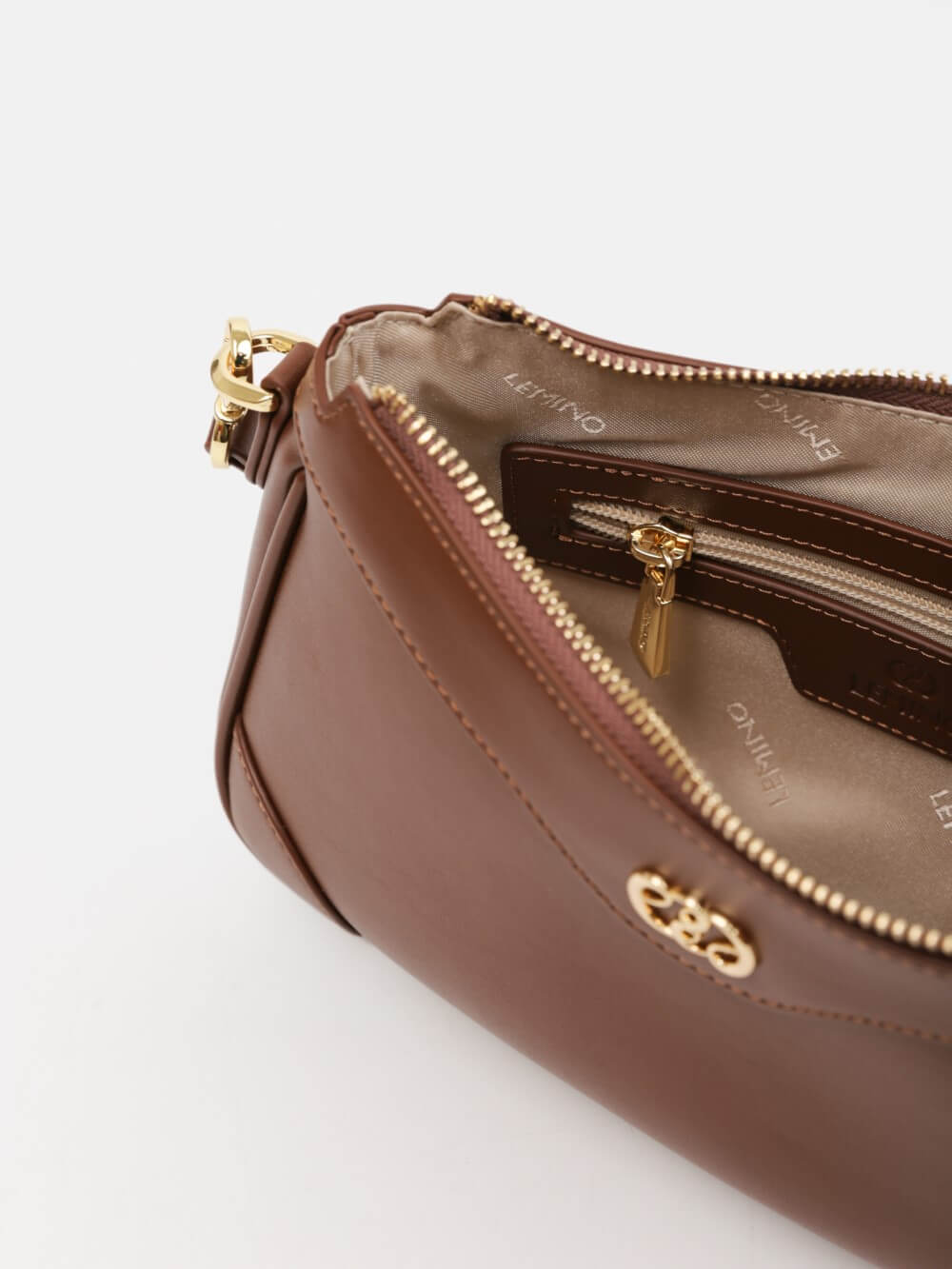 Thiết kế túi LEMINO mang dáng hobo hiện đại, mềm mại theo từng đường cong, tạo cảm giác nhẹ nhàng nhưng vẫn giữ được sự chỉn chu. Bề mặt trơn cao cấp kết hợp chi tiết logo kim loại ánh vàng nhỏ xinh – vừa đủ để tạo điểm nhấn, vừa giữ được sự thanh lịch đặc trưng.