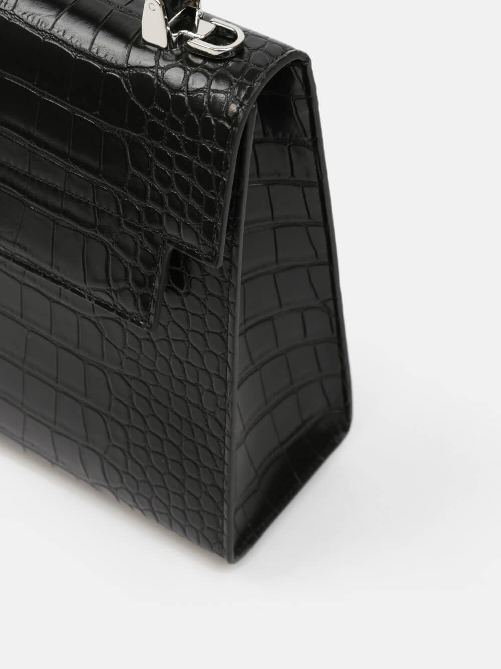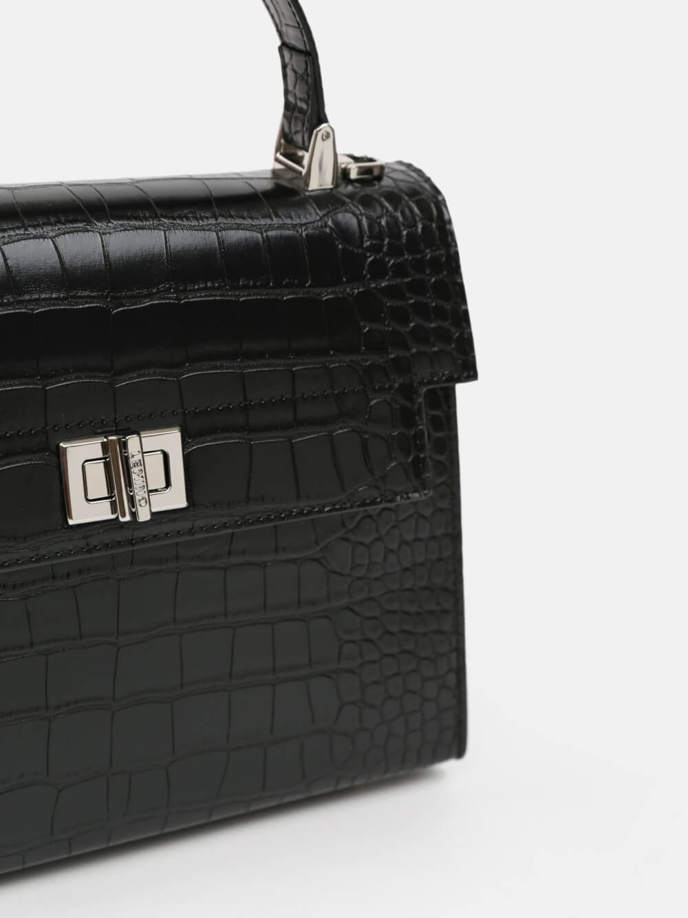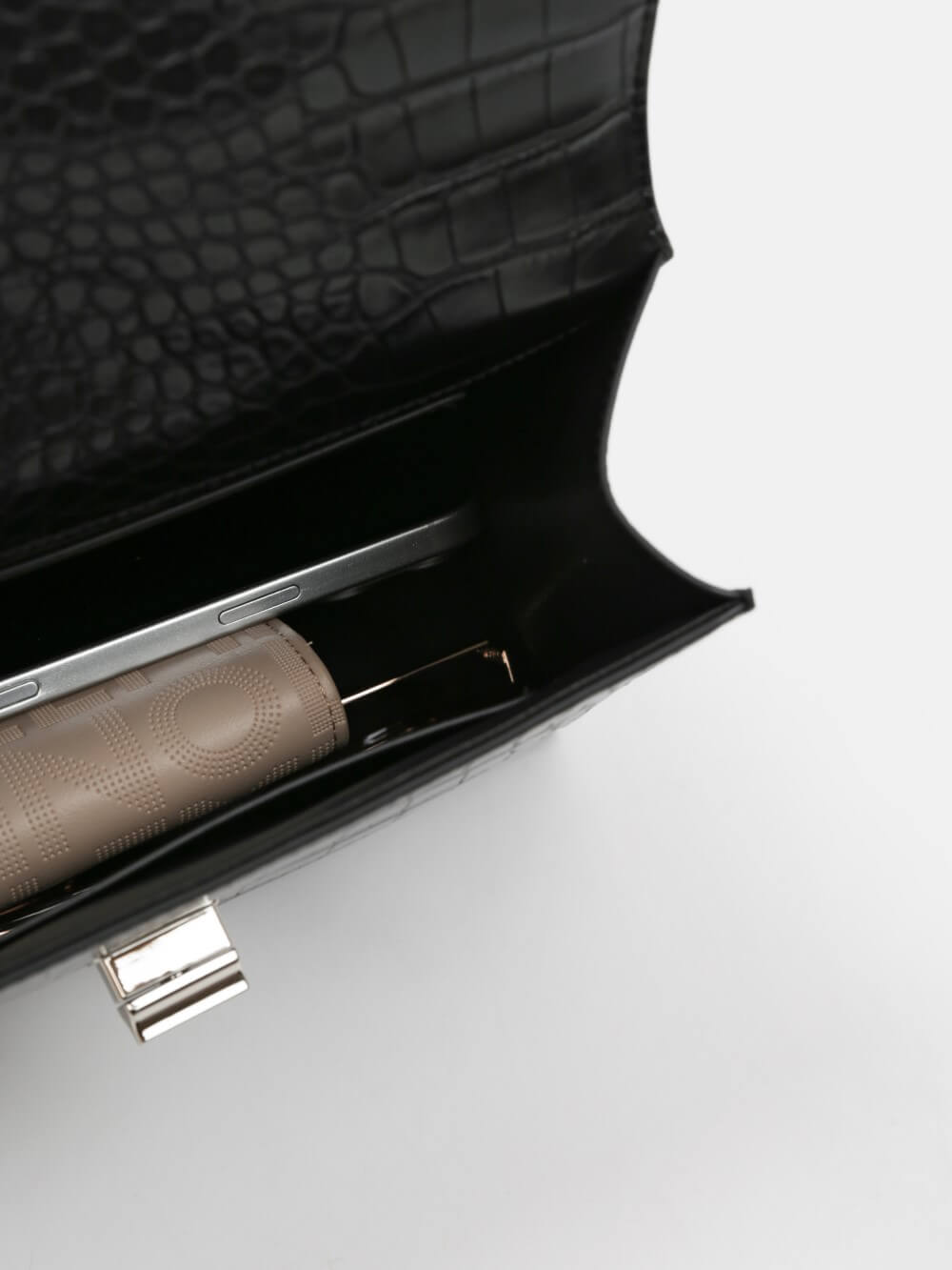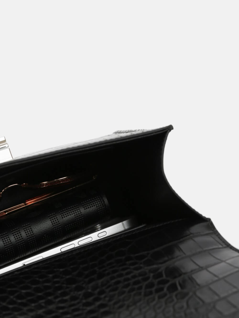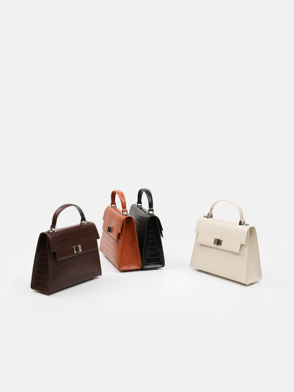 Dáng hộp sang trọng với bề mặt da vân cá sấu, khóa xoay kim loại và quai xách tay thanh lịch. Kèm dây đeo chéo linh hoạt – lý tưởng cho đi làm, dự tiệc, dạo phố.