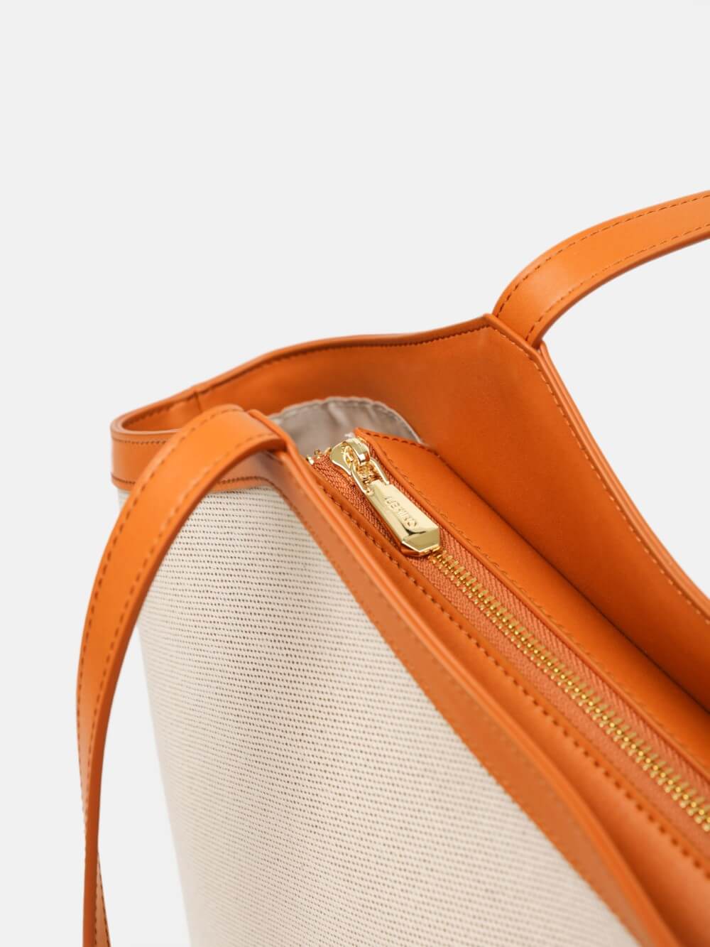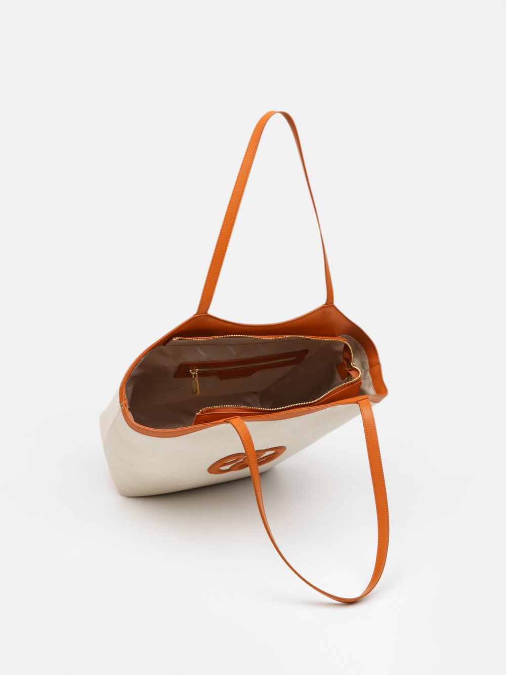 Thiết kế túi tote dáng mềm hiện đại, nổi bật với phom túi mở rộng phía trên tạo cảm giác thanh thoát và nữ tính. Tổng thể tối giản nhưng vẫn mang nét sang trọng, phù hợp với phong cách thanh lịch hằng ngày.