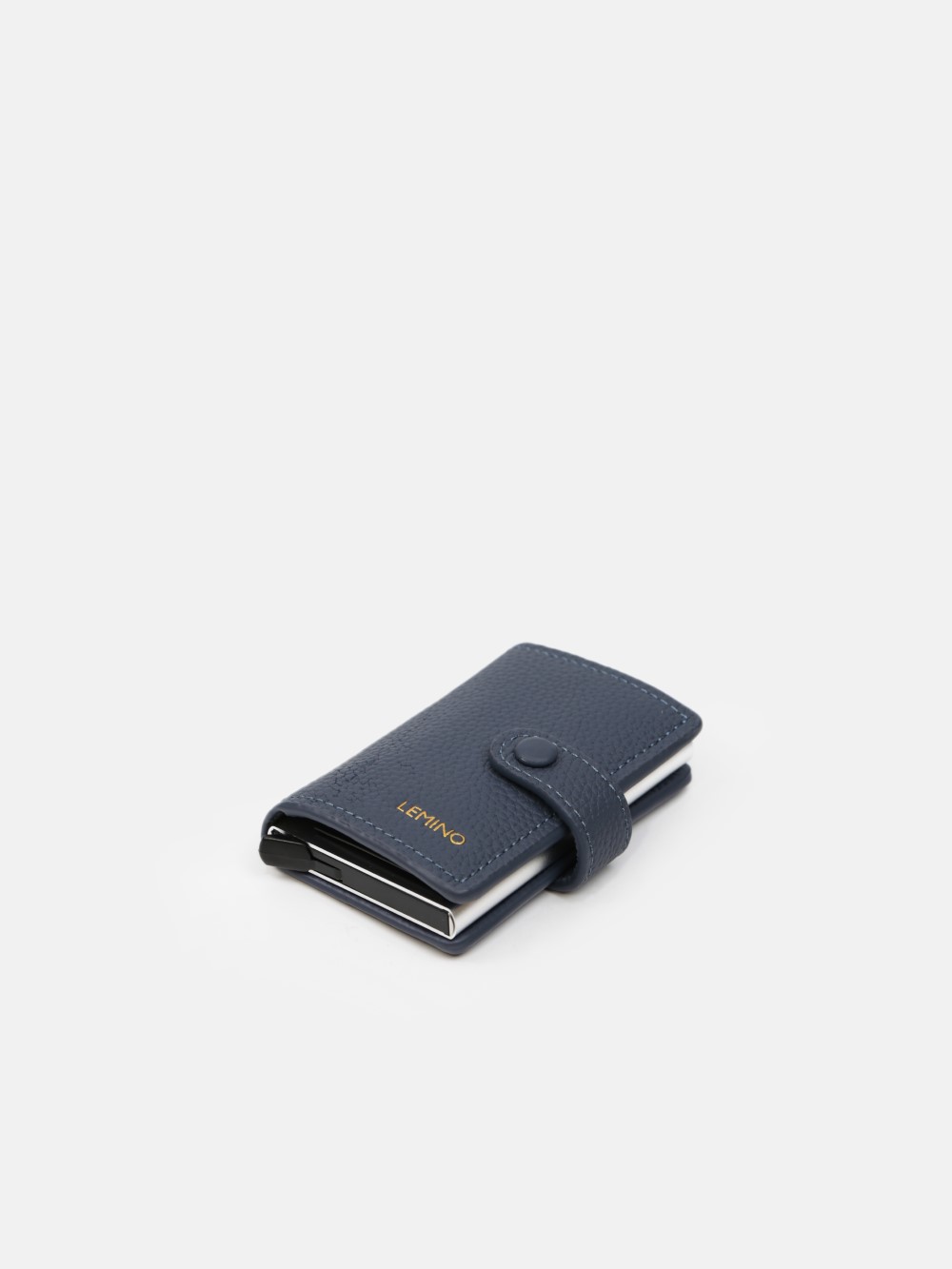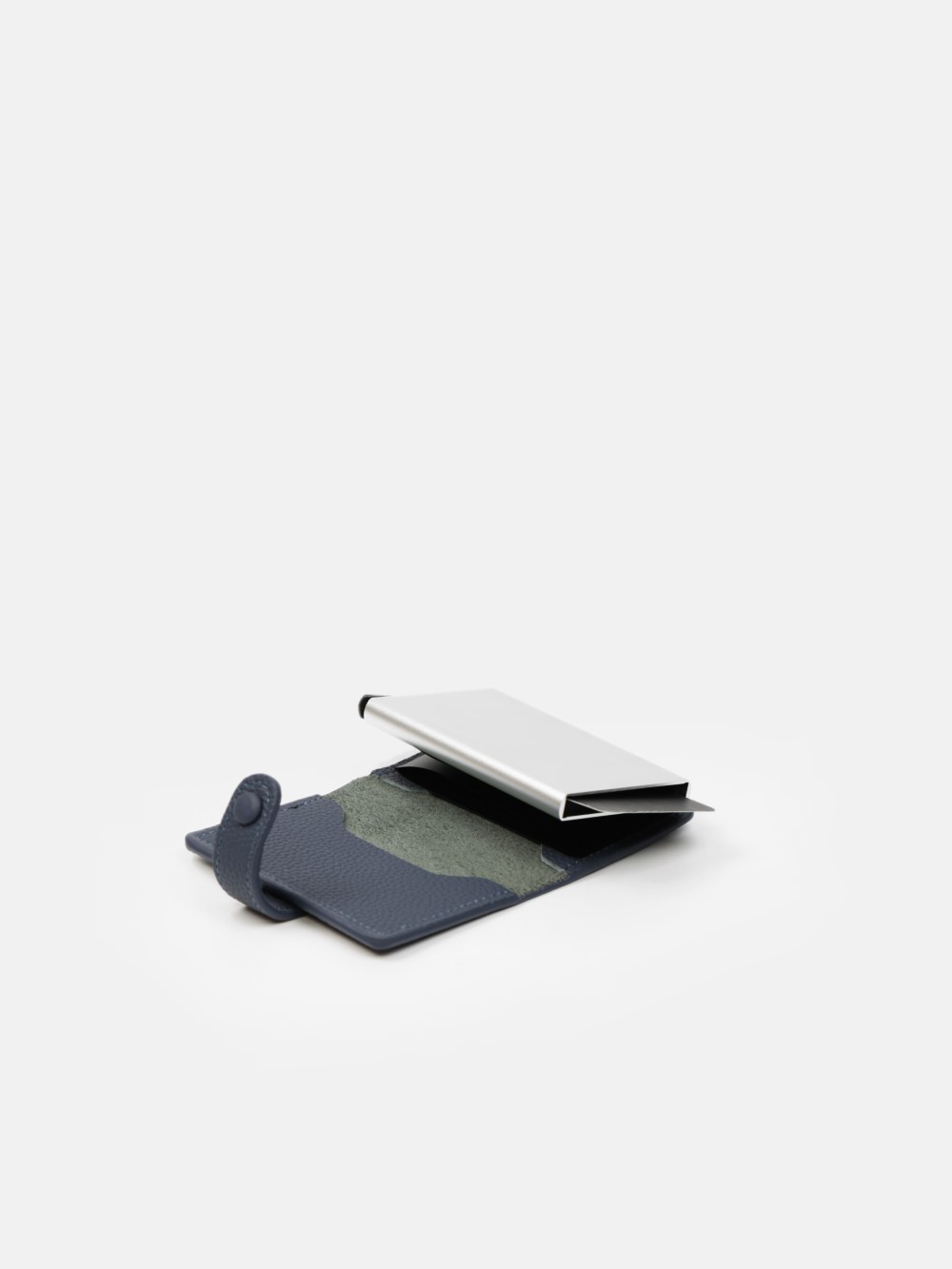 Ví mini dáng đứng bọc da, tích hợp lõi nhôm bảo mật RFID. Cơ chế đẩy thẻ thông minh tiện lợi, gọn nhẹ và an toàn. Phù hợp cả nam và nữ.