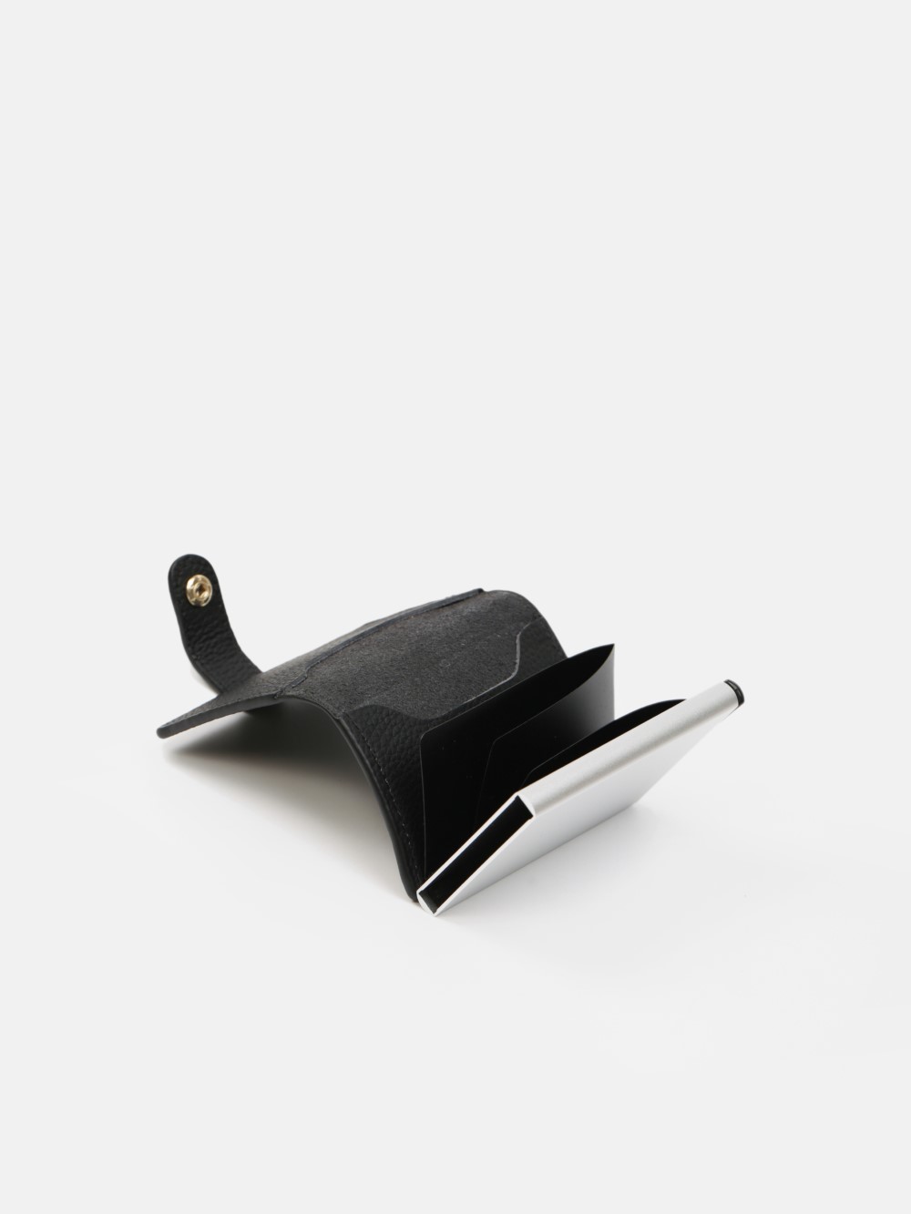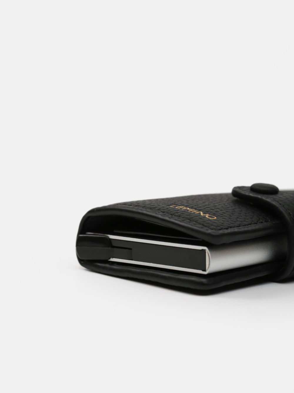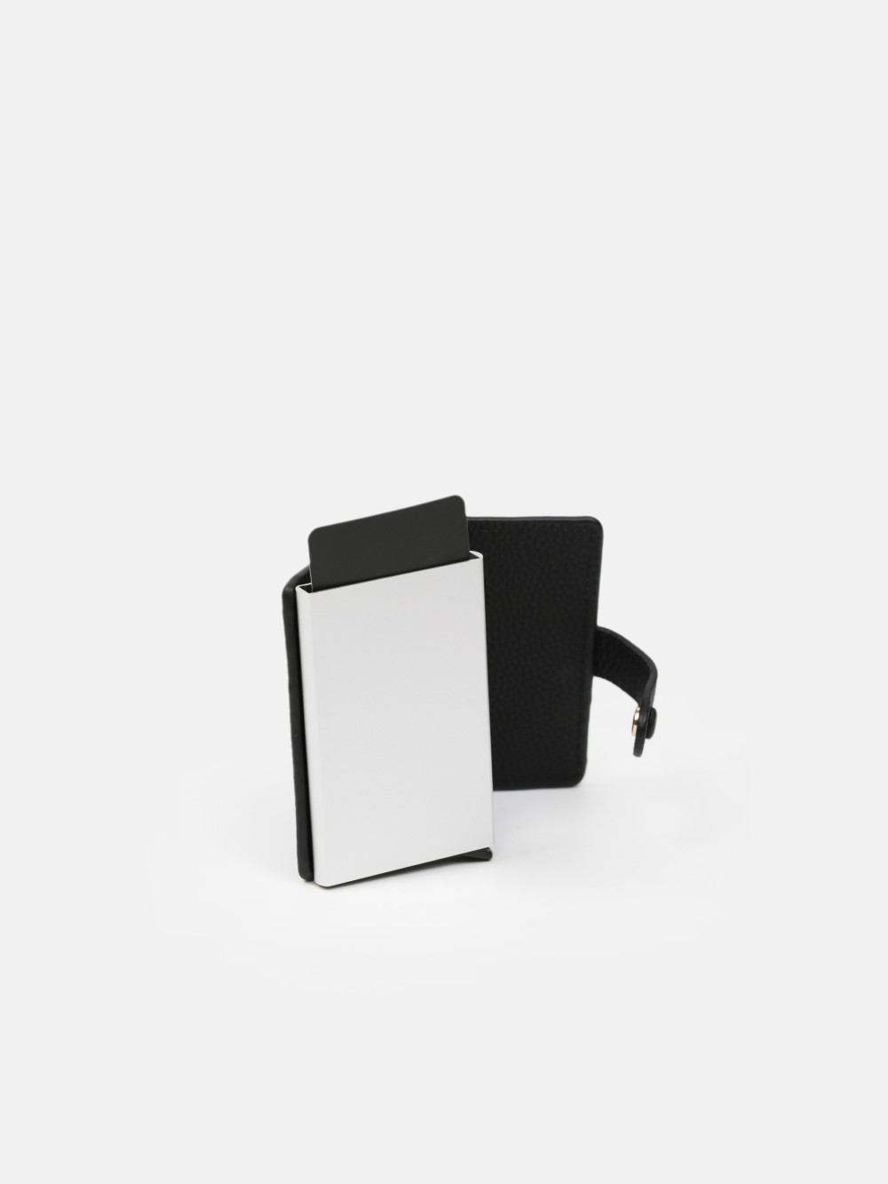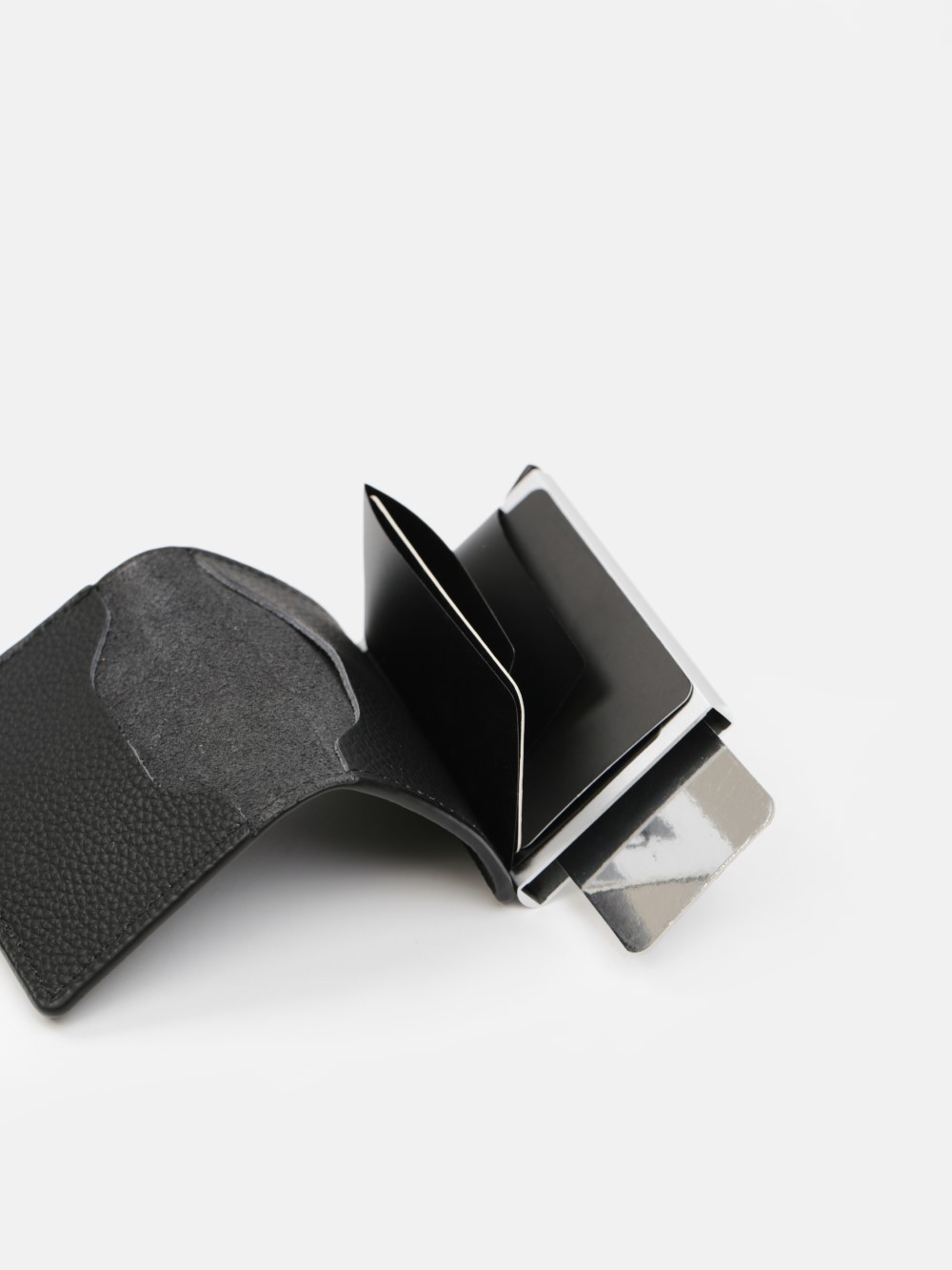 Ví mini dáng đứng bọc da, tích hợp lõi nhôm bảo mật RFID. Cơ chế đẩy thẻ thông minh tiện lợi, gọn nhẹ và an toàn. Phù hợp cả nam và nữ.